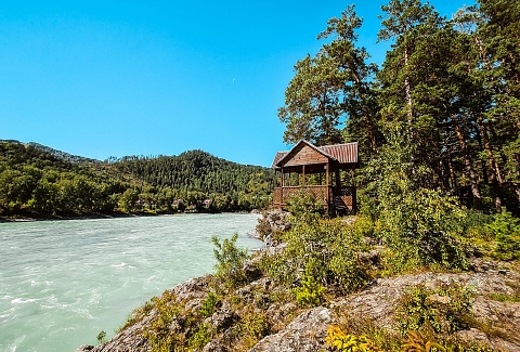 Самолетом до аэропорта г. Горно-Алтайска, далее на такси или с автовокзала междугородним автобусом (в направлении с. Чемал) до остановки по требованию, не доезжая моста «Бирюзовая Катунь».