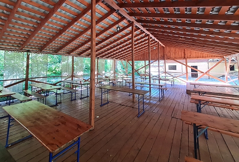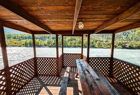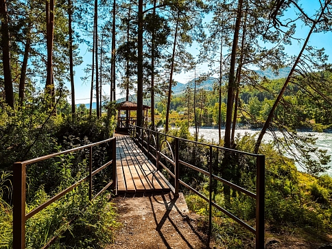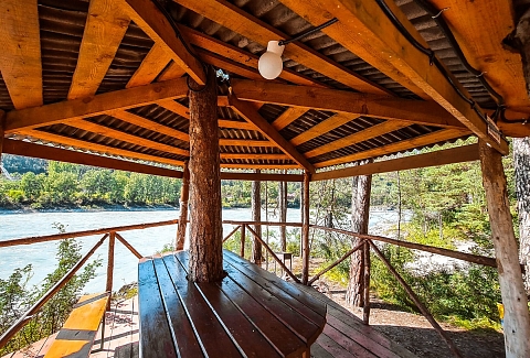База имеет собственную благоустроенную территорию и подойдет для отдыха любого формата. Здесь есть все необходимое для спортивных сборов, активного отдыха и спокойного времяпрепровождения на природе. Имеются также условия и для проведения различных open air мероприятий. Для желающих есть возможность организовать автомобильные, пешие и конные маршруты, треккинг различной сложности, сплавы, скалолазание, охота. Жилой фонд базы очень разнообразен и предлагает номера и домики различного уровня комфортности: есть домики категории VIP, четыре благоустроенных гостиничных корпуса, 2-4 местные аилы, вместительные двухэтажные домики у берега Катуни, отдельно стоящие домики на 3-5 мест, и двухместные бунгало. Номера укомплектованы в соответствии с категорией, часть номеров не оборудована индивидуальным санузлом и душем - удобства расположены на территории. На территории открыто кафе «Алтай Бууз» с уютным залом и камином. В меню – бурятская и монгольская кухни. Установлены уличные столики-беседки, которые позволяют посещать кафе в любую погоду, оставаясь при этом на свежем воздухе. Также предлагается комплексное питание в летней столовой. На территории оборудованы BBQ зоны. Мангалы расположены в непосредственной близости от домов, или на территории, как, например, беседки с мангальными зонами на собственном островке на Катуни. К услугам отдыхающих работает оздоровительный комплекс. Гости могут пройти курс массажа, погреться в фитобочке или принять полезную пантовую ванну. На территории функционирует просторный подогреваемый открытый бассейн 20х6 метров. Он оснащен сауной и удобными душевыми. Для детей рядом предусмотрен отдельный мини-бассейн. Для спортивного досуга предлагается несколько площадок. Есть специально оборудованные помещение для кроссфита, спортивный городок. Гости могут поиграть в настольный теннис, бильярд, дартс. Для личного транспорта отдыхающих организована автомобильная парковка. Есть доступ к беспроводному интернету wi-fi.