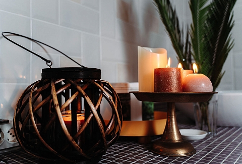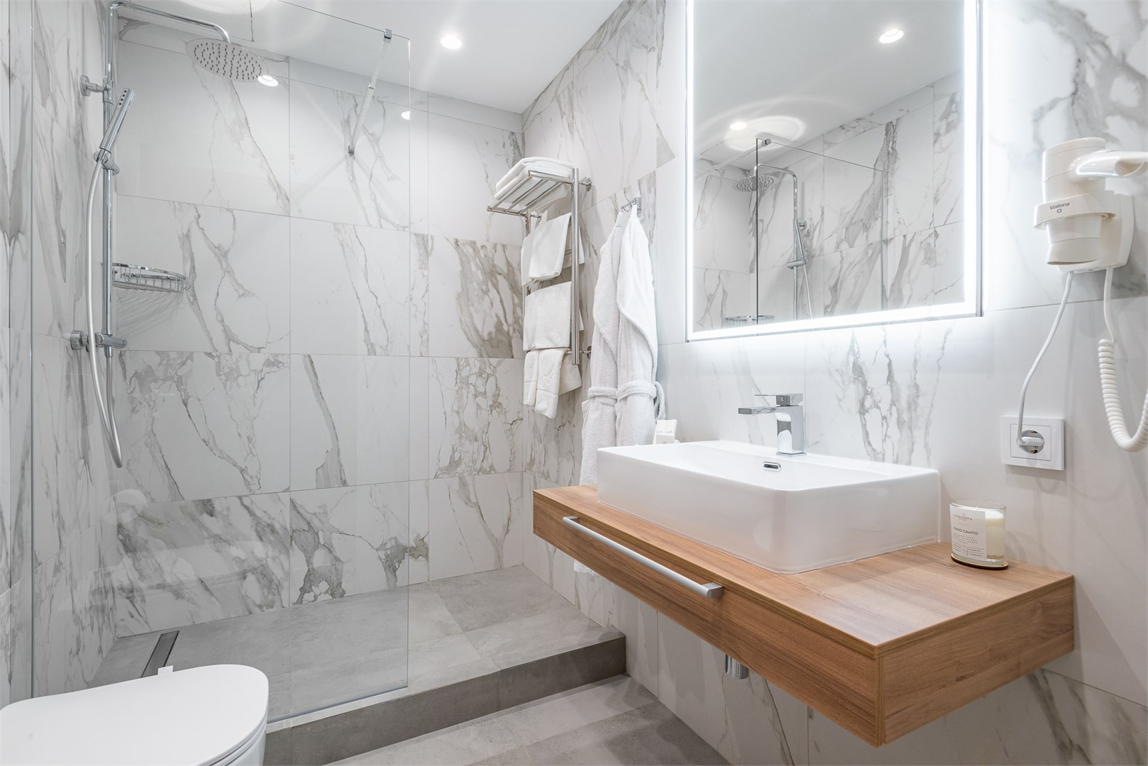 Санузел: с душевой кабиной, тапочки, туалетные принадлежности, фен, халат