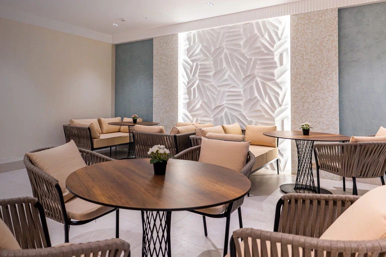 В номере: вешалка, диван, зеркало, кровати односпальные /одна двуспальная кровать, прикроватные тумбочки, стол, стулья, шкаф, кондиционер, сейф, телевизор, телефон, чайная станция