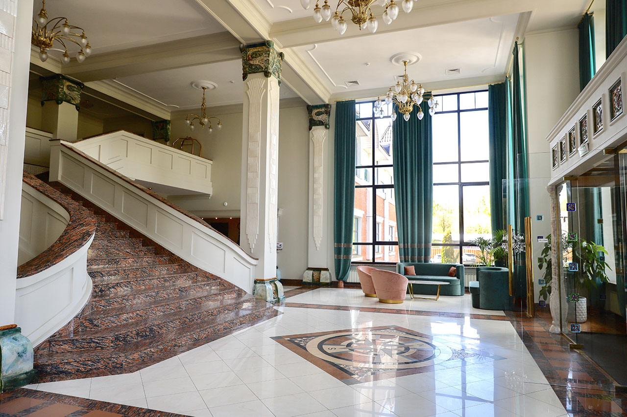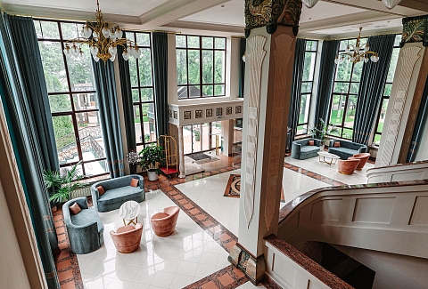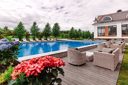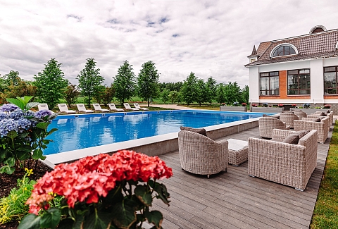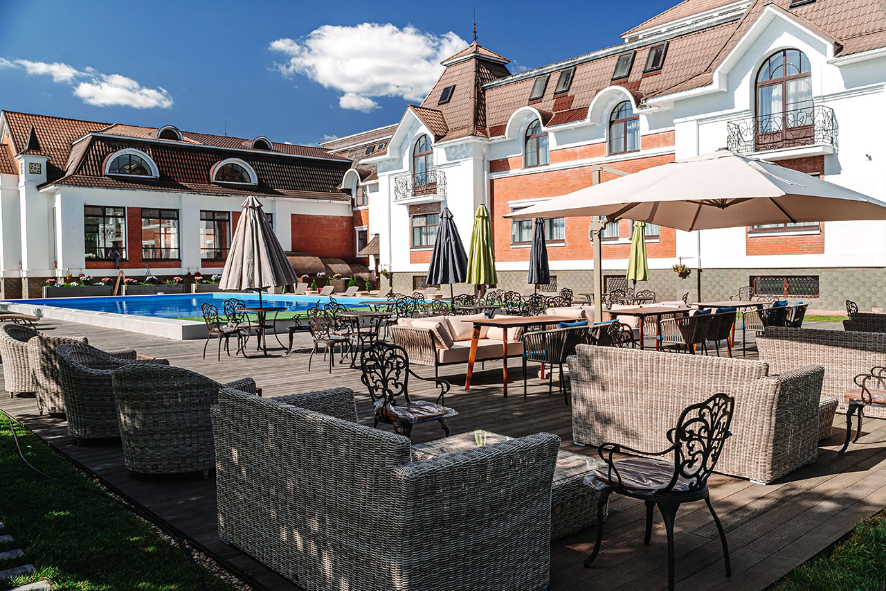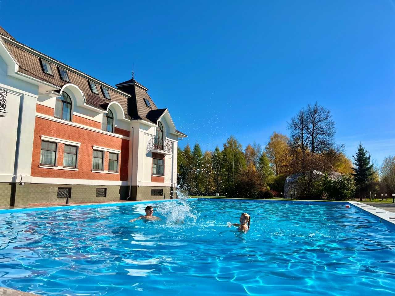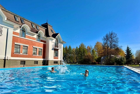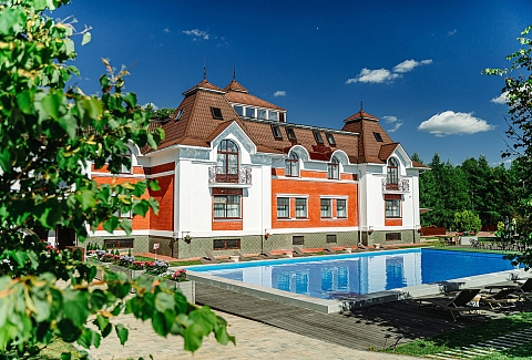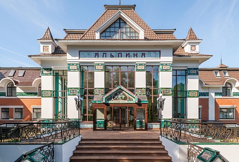 Здание отеля, стилизованное под русский модерн, занимает благоустроенную территорию площадью 12 гектаров. В распоряжении гостей 32 просторных светлых номера. Каждый номер оснащен персональным санузлом с душевой кабиной, халатами и тапочками для отдыхающих, в комнатах – ЖК-телевизор со спутниковыми каналами, кондиционер, электрический чайник. На 1 этаже отеля работает лобби-бар, приятно провести вечер можно в ресторане Альпина с авторской кухней или в кафе Патиссерия. К услугам гостей 2 всесезонных бассейна – открытый и закрытый бассейн формата RELAX, также есть детский бассейн с подогревом, зона Spa с хаммамом и сауной. Досуг можно скрасить за игрой в бильярд или боулинг, регулярно в отеле устраиваются вечеринки, вечера живой музыки. Все желающие летом могут отправиться на рыбалку, а зимой покататься на лыжах или коньках. Для проведения деловых встреч и мероприятий оборудованы конференц-залы. В числе дополнительных удобств – круглосуточная стойка регистрации и охраняемая парковка.