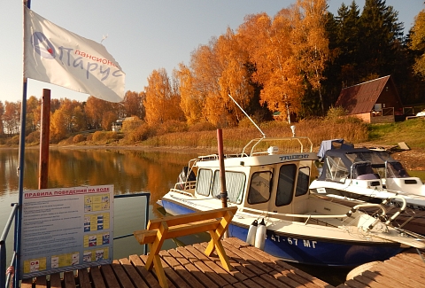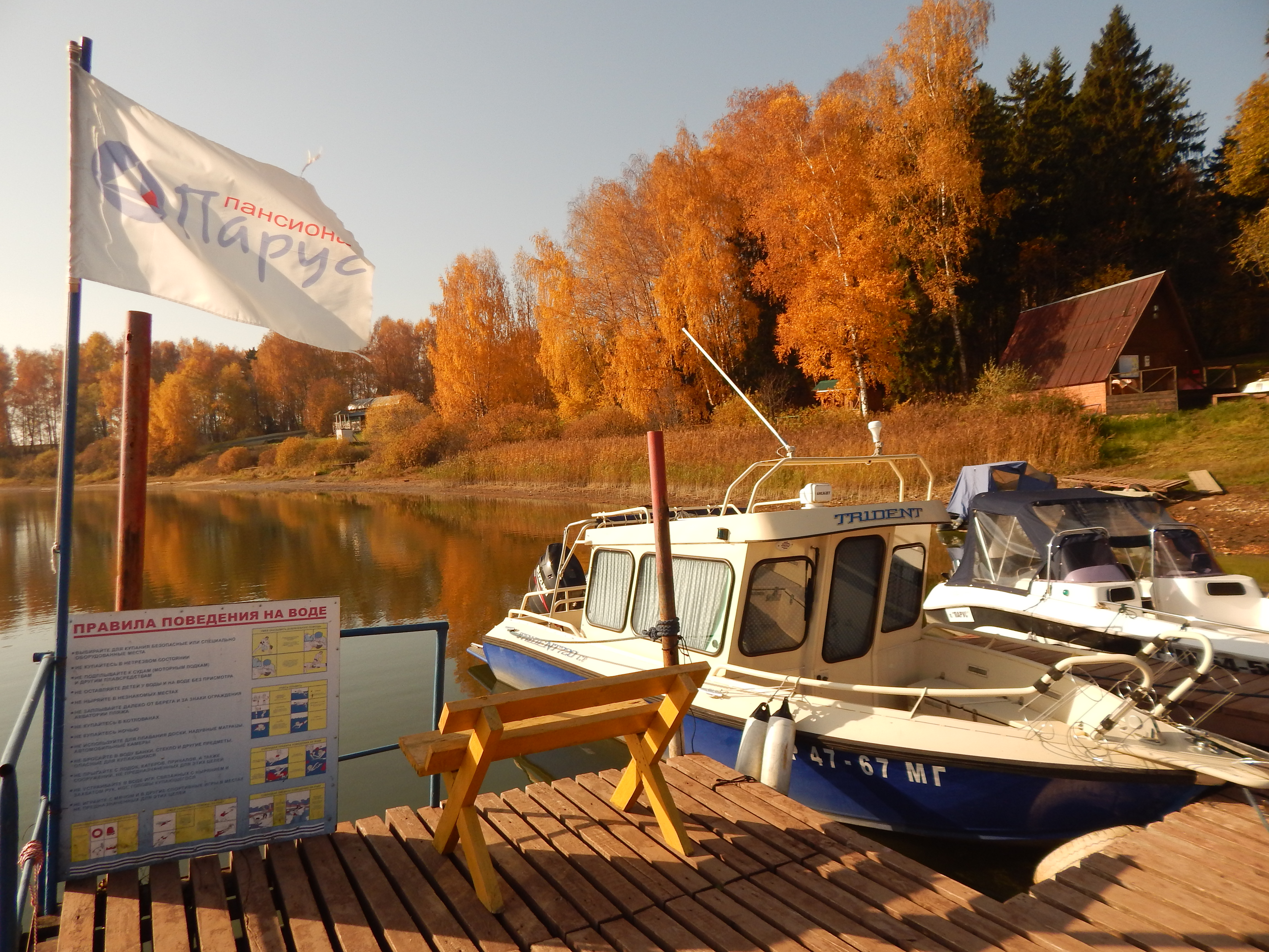 На личном транспорте по Новорижскому шоссе, до указателя «Руза» под мост по главной дороге 25 км в сторону Рузы, после указателя «дер. Старое» через 2 км слева указатель Пансионат Парус.