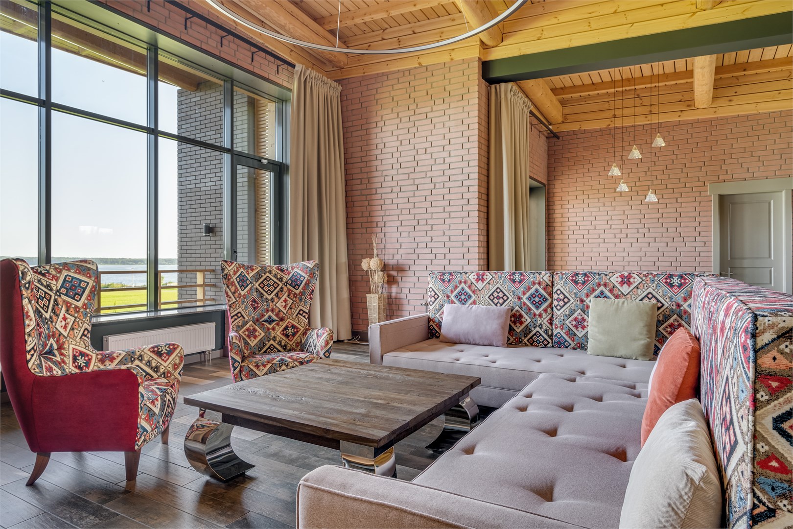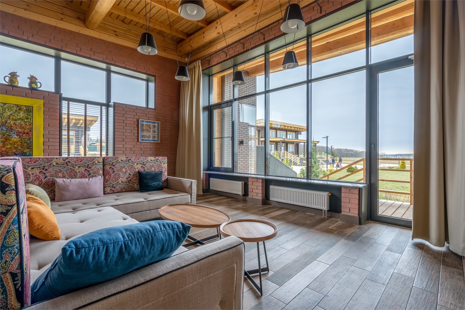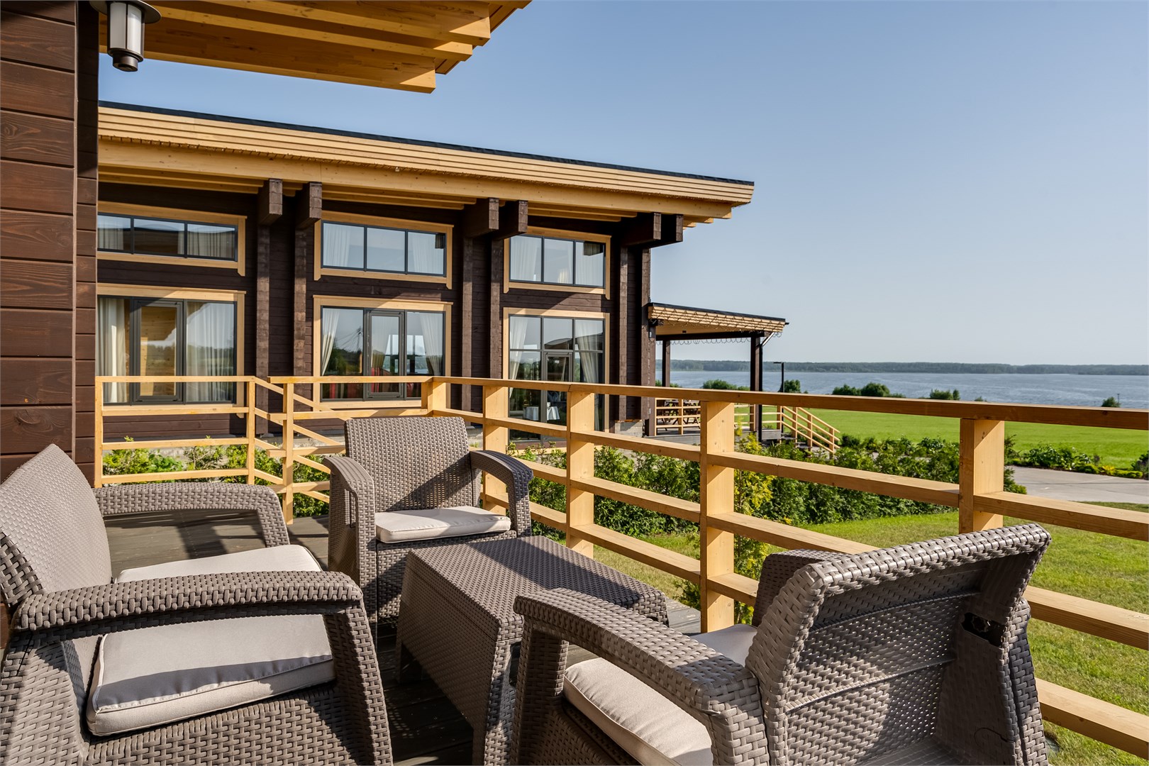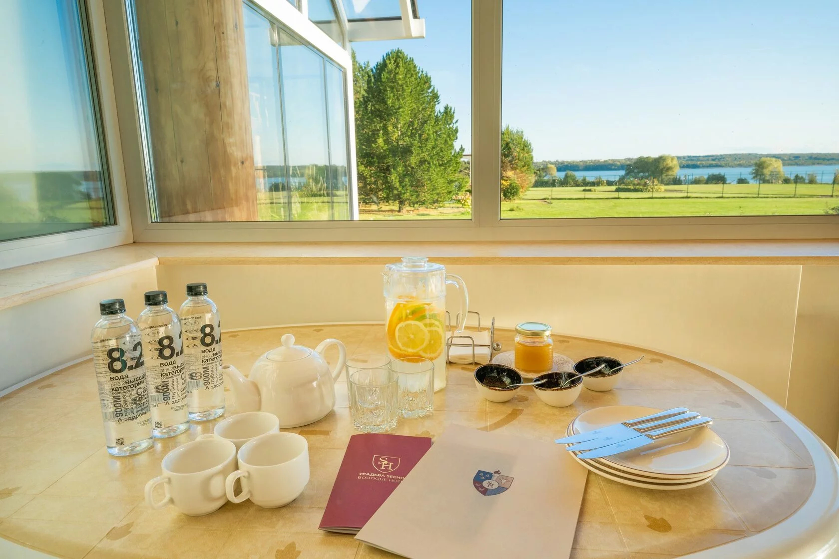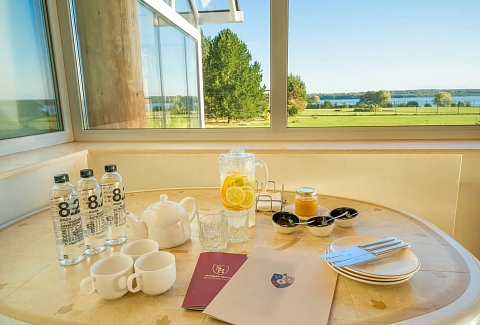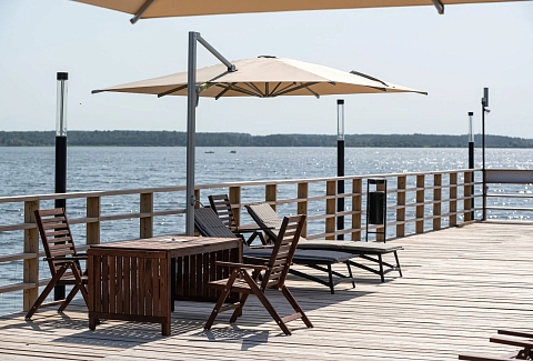 В номерах стильный интерьер, выдержанный в приятной цветовой гамме, в отделке использованы натуральные материалы, везде есть собственная оборудованная кухня, санузел с душем или ванной, кондиционер и вся необходимая бытовая техника. В комплексе работает ресторан, где подаются блюда европейской и русской кухни. В ресторане — панорамные окна, есть летняя терраса и гастро-павильон с печью.Каждый гость в усадьбе «Зеехоф» сможет найти занятие по вкусу. Расслабиться и отдохнуть можно в сауне, бассейне, на массаже или на занятиях йогой. Любители активного образа жизни могут отравиться на рыбалку, арендовать лодки или велосипеды. Также в комплексе регулярно проходят развлекательные мероприятия, арт-вечеринки, джазовые вечера. В усадьбе есть собственная мини-ферма с домашними животными — птицей и карликовыми камерунскими козочками, где производятся экологически чистые фермерские продукты.Летом доступен пляж на берегу водохранилища, на пирсе установлены лежаки и шезлонги, желающие могут покататься на sup-борде или понырять с понтона.