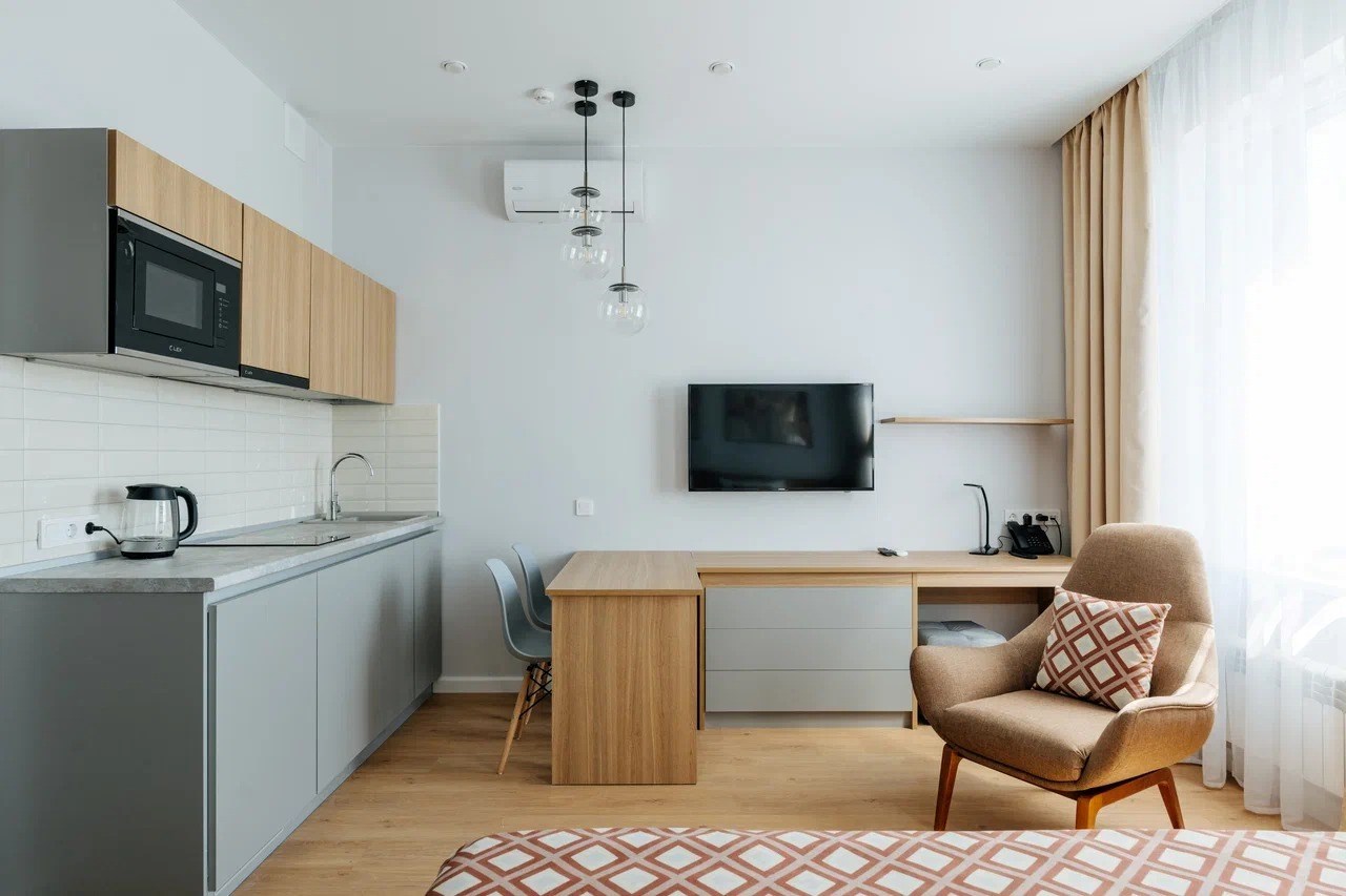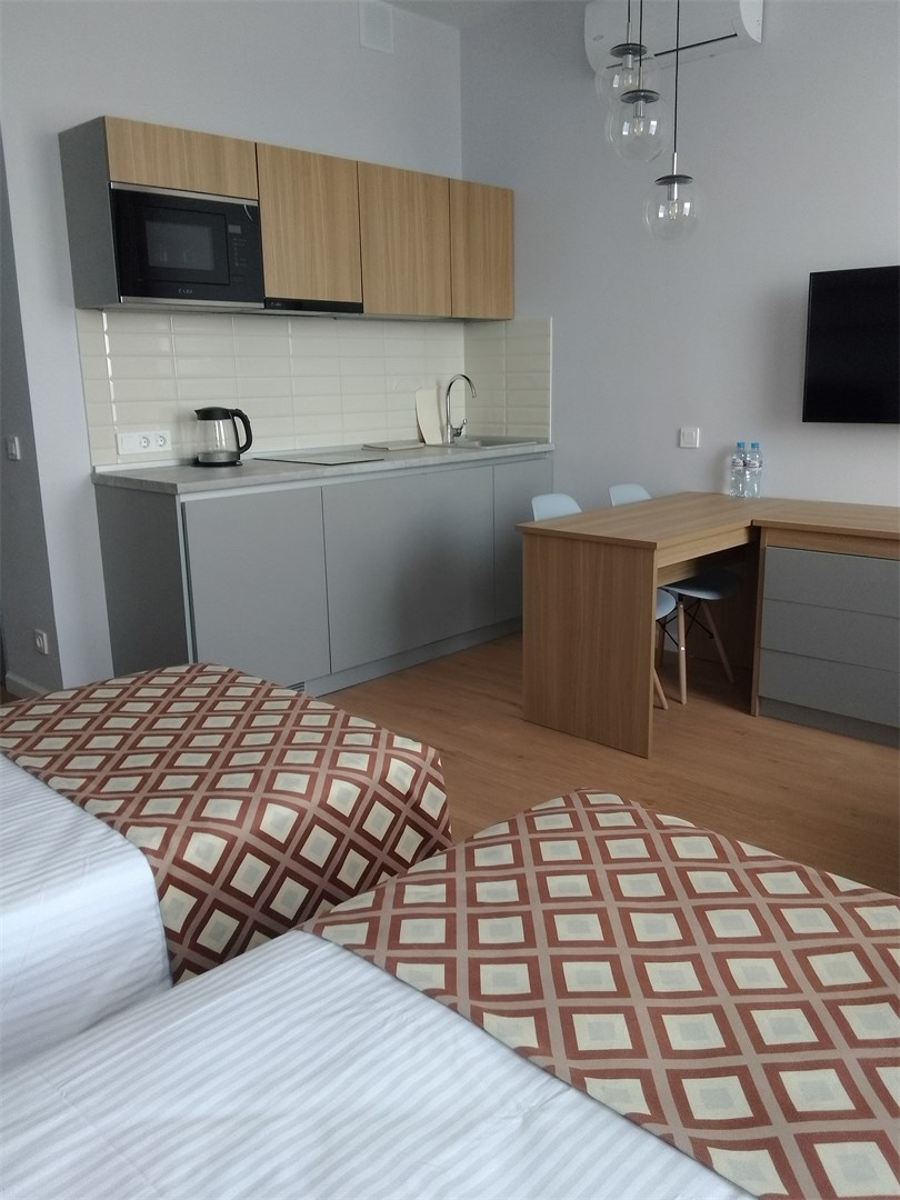 Расстояние до аэропорта составляет 30 километров, до железнодорожного вокзала – 18 километров. Отель расположился в 22-этажном здании с лифтом. В комнатах установлена удобная мебель для отдыха, есть места для хранения одежды. К услугам гостей телевизор, кондиционер, Wi-Fi. Санузел индивидуальный, с душем или ванной, полотенцами, туалетными принадлежностями и феном. Для самостоятельного приготовления еды есть кухонная зона, оборудованная холодильником, плитой, микроволновой печью, электрическим чайником и необходимым набором посуды. Для личного транспорта отдыхающих предусмотрена парковка. Стойка регистрации круглосуточная. Сдать крупногабаритные вещи можно в камеру хранения багажа.