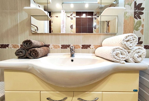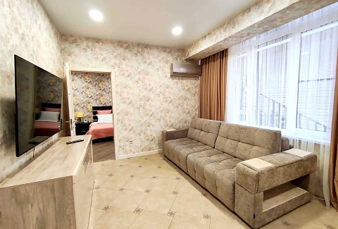 В 200 метрах от моря. Уютная квартира, в районе Чкалова 2, дом комфорт класса с охраняемой территорией и видео наблюдением, для вашего комфорта мы предлагаем круглосуточное заселение. Мы работаем для Вас 24/7.