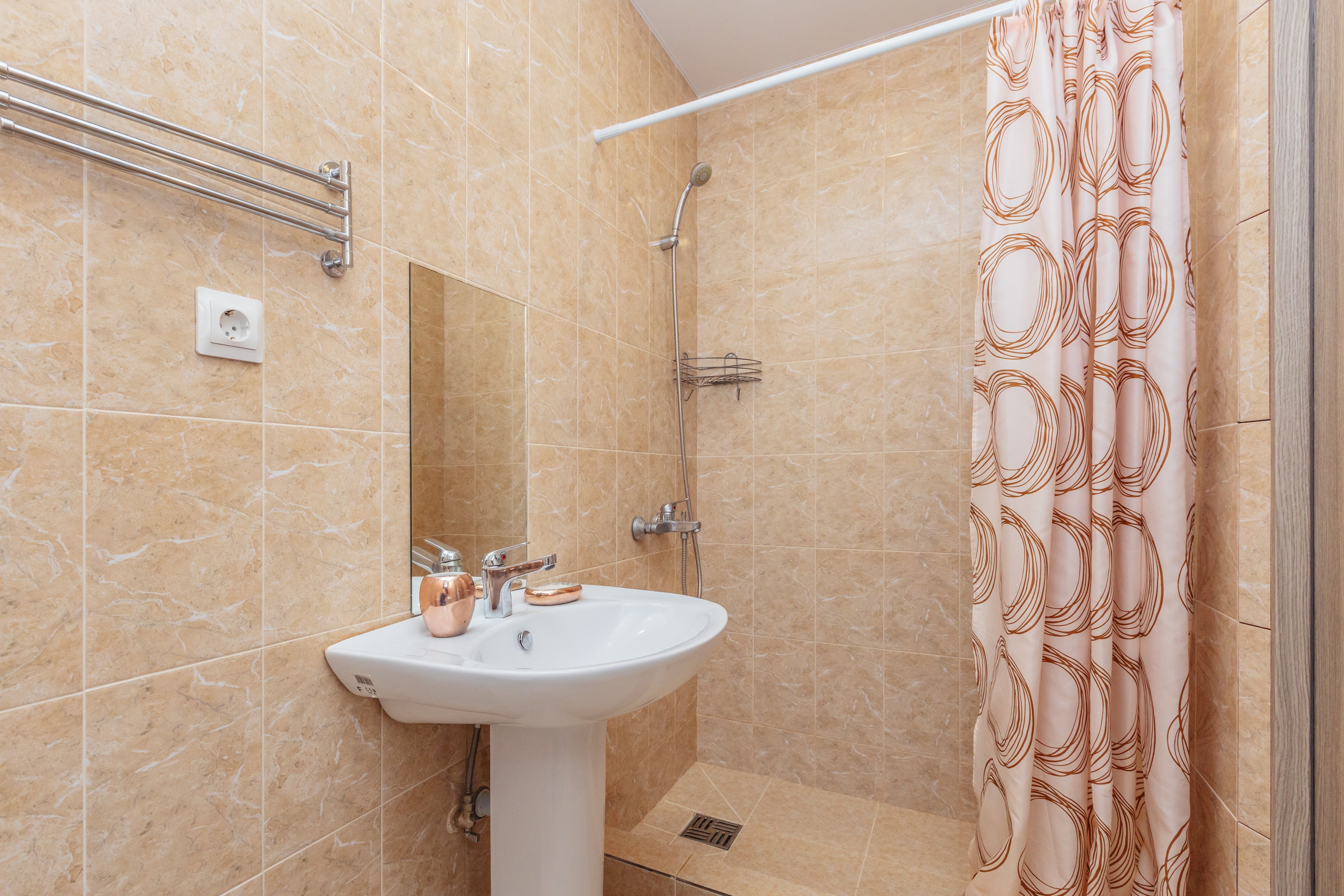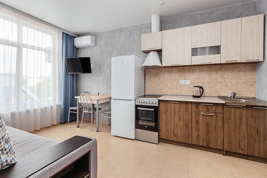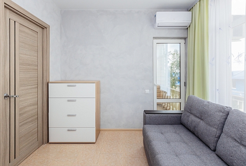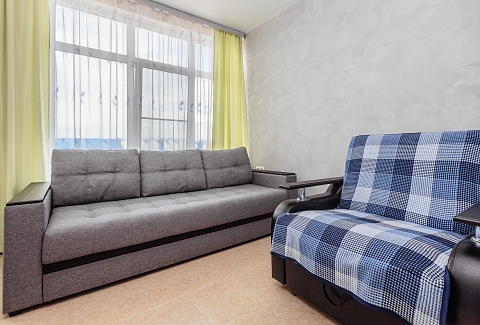 Но в то же время в 5 минутах езды от городского пляжа, аэропорта, Ж/Д вокзала, многочисленных кафе и ресторанов, магазинов. Неподалеку находится транспортная развязка, откуда можно уехать в любой конец города. Особенно удобно будет гостям, которые приехали на личном автомобиле, поскольку у комплекса большая бесплатная парковка. Апартаменты рассчитаны для проживания до 5 человек, здесь все предусмотрено для комфортного отдыха. В распоряжении гостей: Диван-кровать 2 шт. Постельное бельё Мягкие полотенца TV Wi-fi Сплит тепло/холод Шкафы для вещей и чемоданов Кухня со всей необходимой посудой, столовыми приборами и бытовой техникой: чайник, микроволновая печь, вытяжка, эл.плита, духовка, холодильник. В ванной комнате: жидкое мыло, гель для душа, шампунь, кондиционер, фен. Гладильная доска и утюг, сушилка для белья.