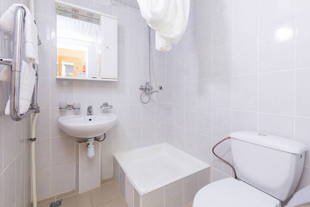Санузел: с душем (поддон), туалетные принадлежности, фен