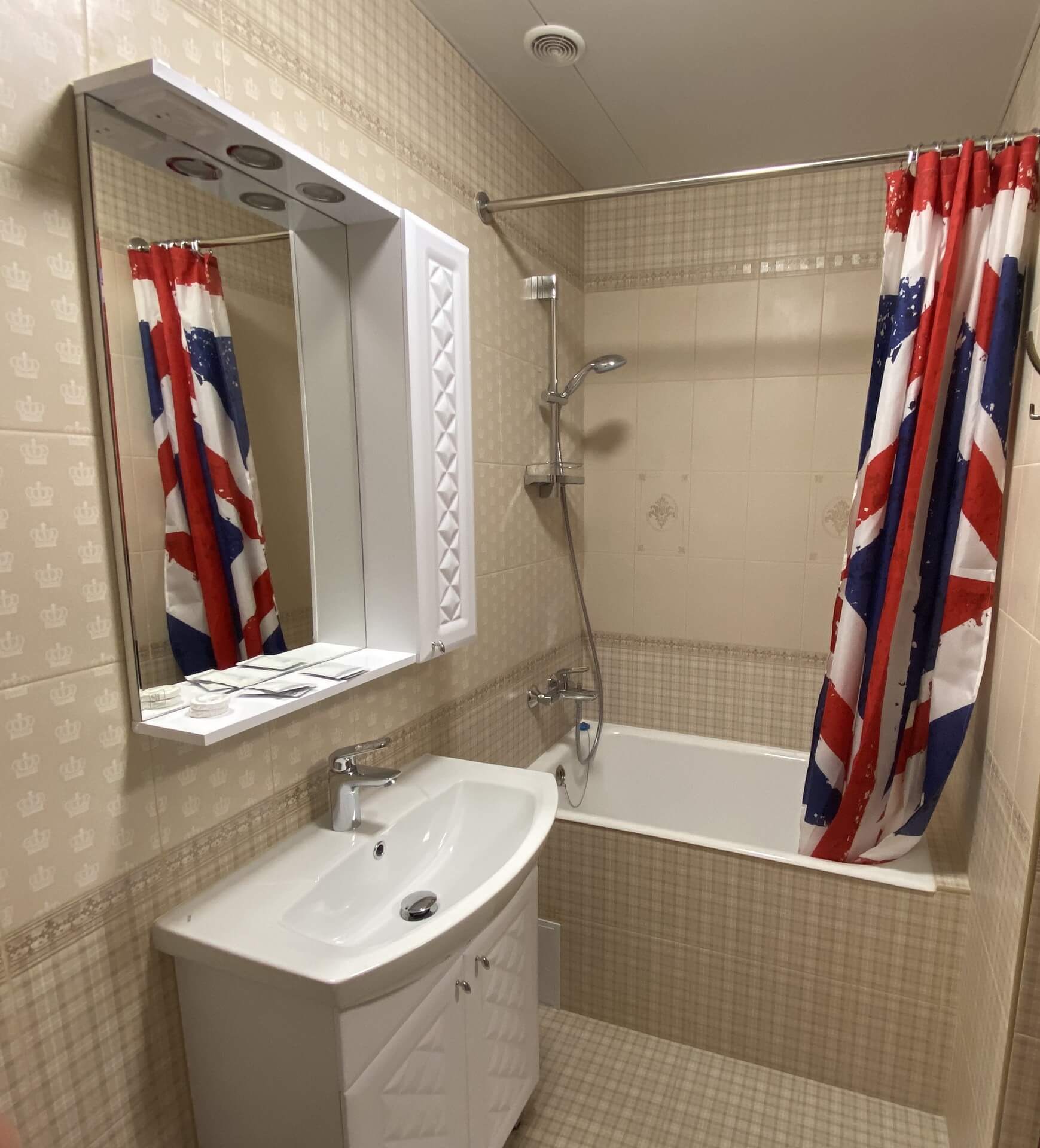Санузел: с душем, тапочки, туалетные принадлежности, фен, халат