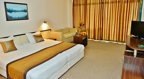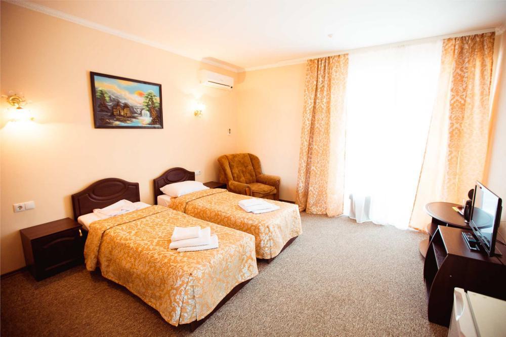 В номере: зеркало, кровати односпальные /одна двуспальная кровать, прикроватные тумбочки, столик журнальный, шкаф, кондиционер, телевизор, холодильник
