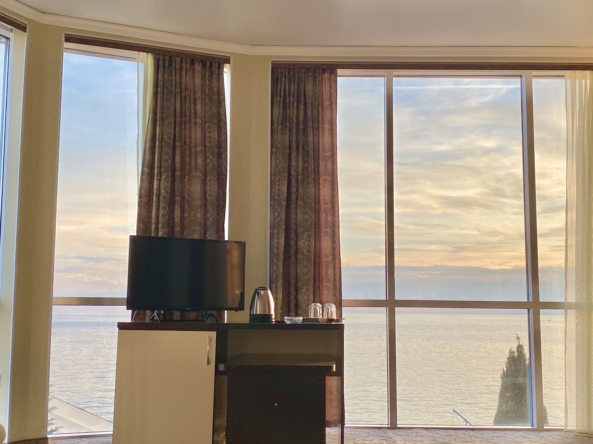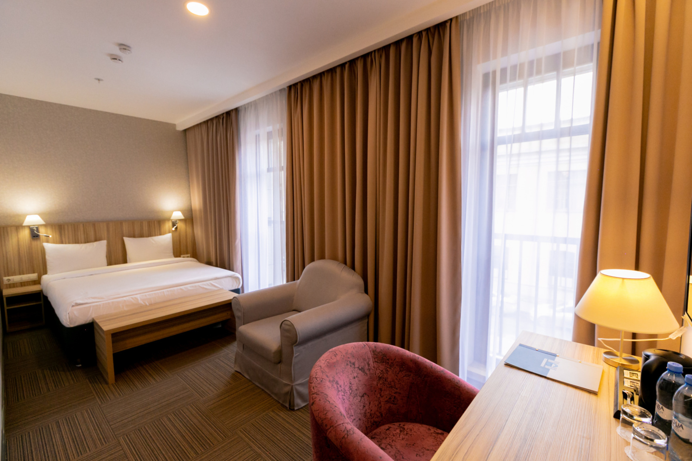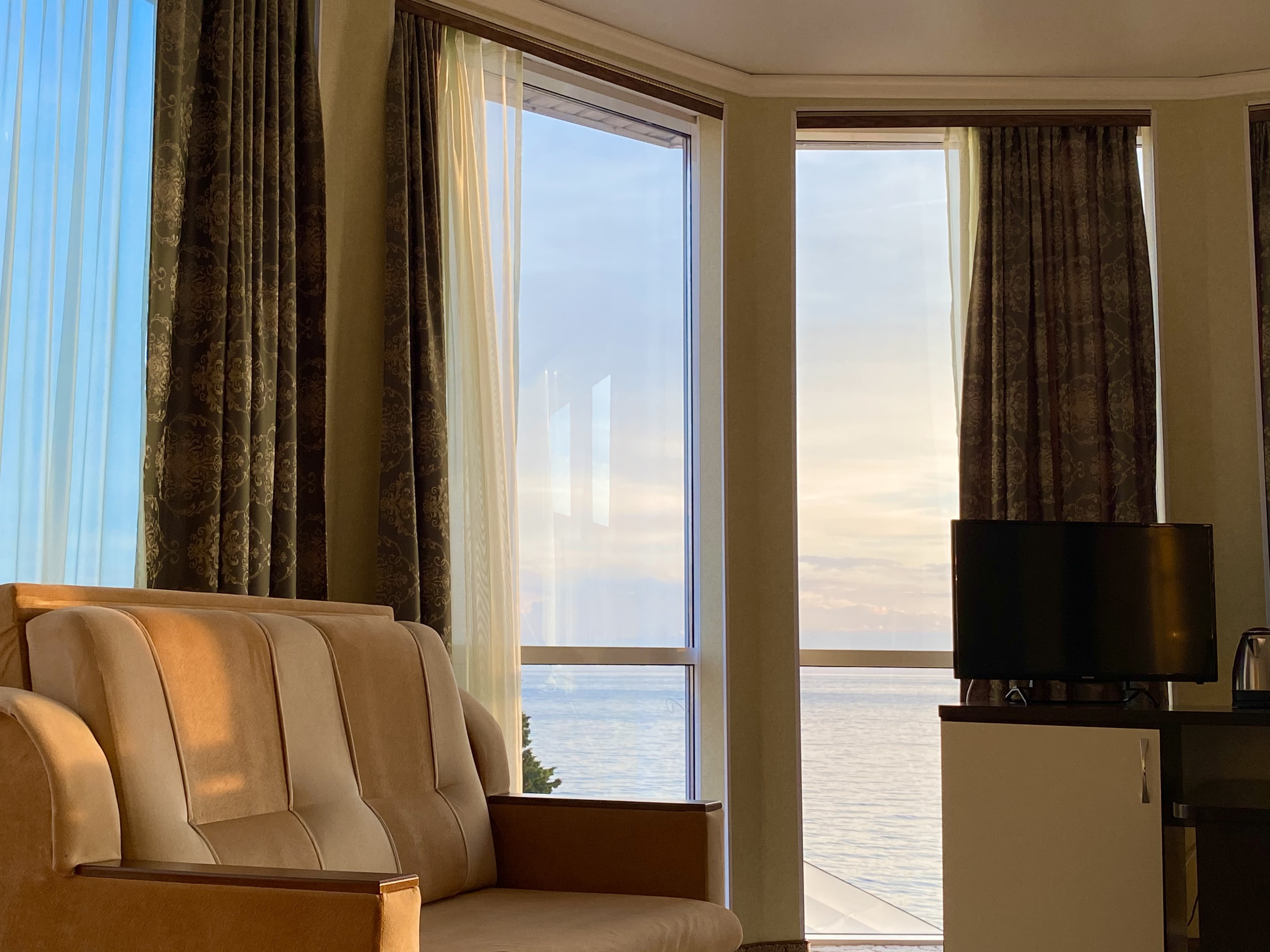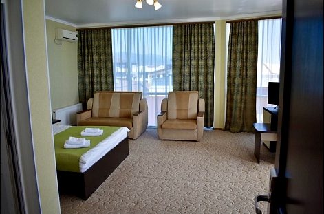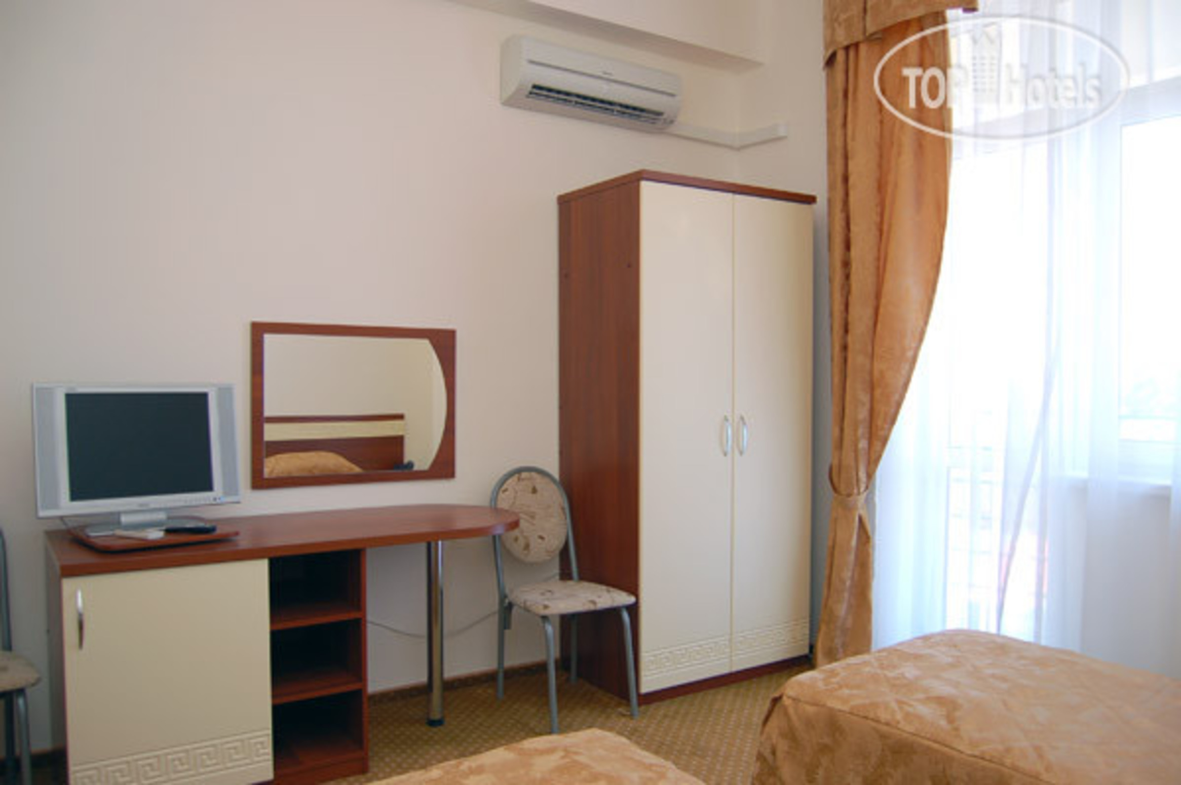Гостей ожидают номера разные по уровню комфорта, площади и вместимости. Однако независимо от категории везде есть собственная ванная комната и кондиционер. Из некоторых номеров открываются виды на море.В отеле работают кафе, где для гостей готовят профессиональные повара, и бар с большим выбором напитков. В распоряжении отдыхающих терраса для загара, также гости могут арендовать велосипеды для прогулок по городу. Автовладельцы при наличии свободных мест могут оставить свою машину на платной парковке перед корпусом. Для детей оборудована игровая площадка, в случае необходимости за малышами присмотрят няни. В паре минут ходьбы расположен благоустроенный пляж. На галечном побережье есть раздевалки, теневые навесы, шезлонги, различные водные аттракционы.
