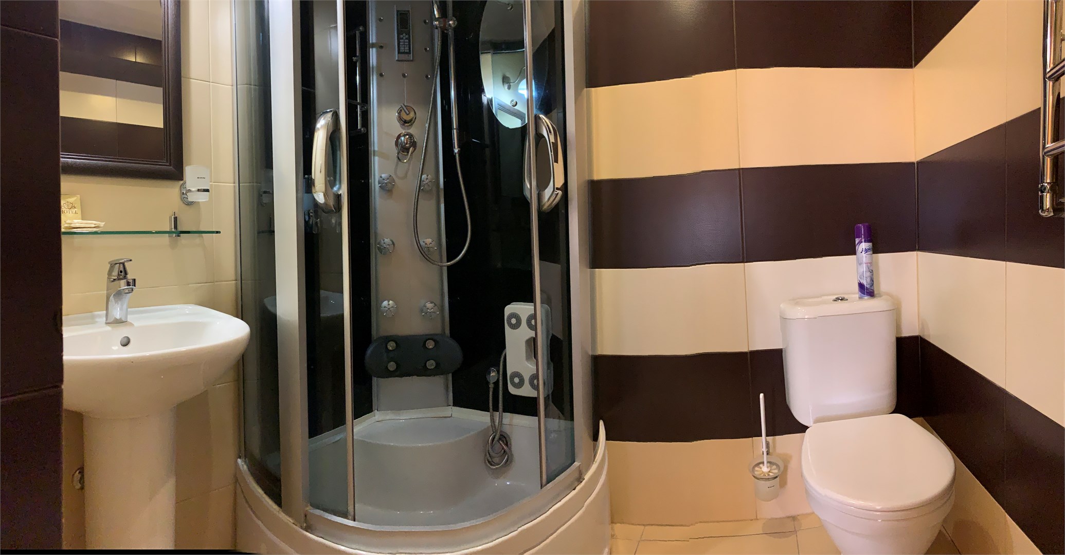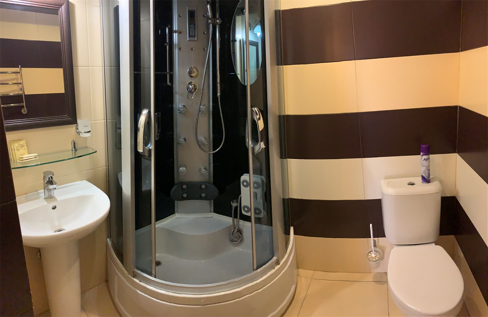 Санузел: с душевой кабиной, туалетные принадлежности, фен