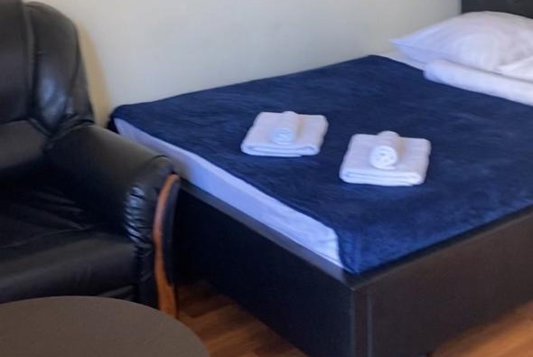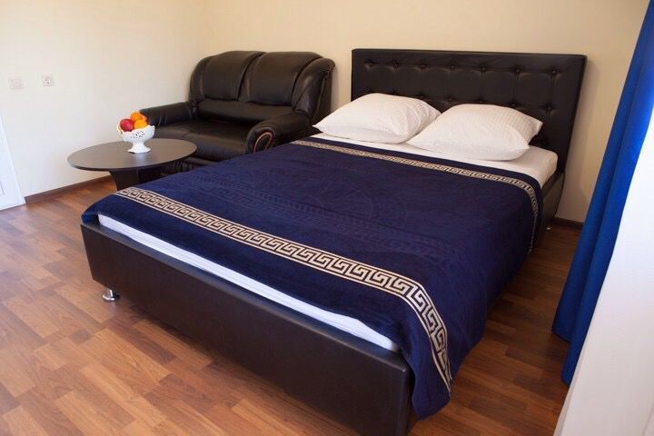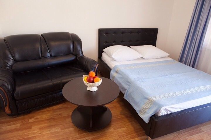 В номере: вешалка, диван раскладной, зеркало, кровать двуспальная, стол, стулья, шкаф, кондиционер, телевизор, холодильник, электрочайник