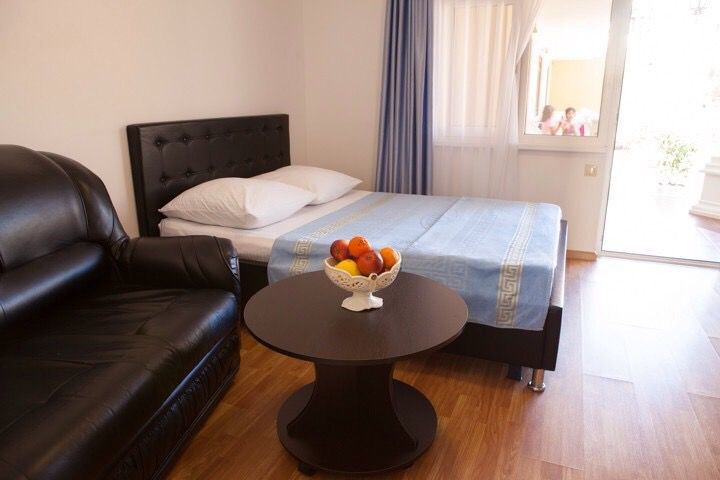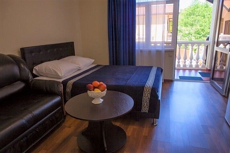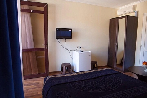 Жилой фонд, рассчитанный на 28 гостей, предлагает стандартные двух- и трехместные номера с приятным классическим интерьером. В каждом есть собственный санузел, кондиционер, электрочайник и мини-холодильник.Для отдыхающих организована общая кухня, оснащенная техникой и посудой, во дворике есть зона для барбекю и небольшой бассейн. Для детей оборудована игровая площадка, в отеле регулярно проходят детские дискотеки.В 500 метрах от корпуса находится хорошо оборудованный галечный пляж. На побережье установлены раздевалки, работает прокат шезлонгов, зонтиков и другого пляжного инвентаря, много водных развлечений.