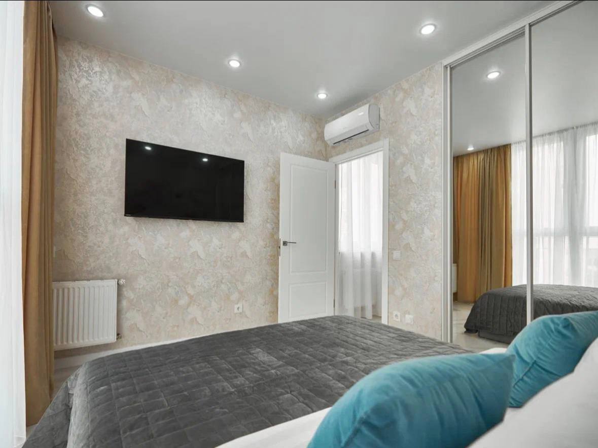 В номере: диван раскладной, кровать двуспальная, стол, стулья, шкаф, гладильная доска, кондиционер, стиральная машина, сушилка для белья, телевизор, утюг, холодильник