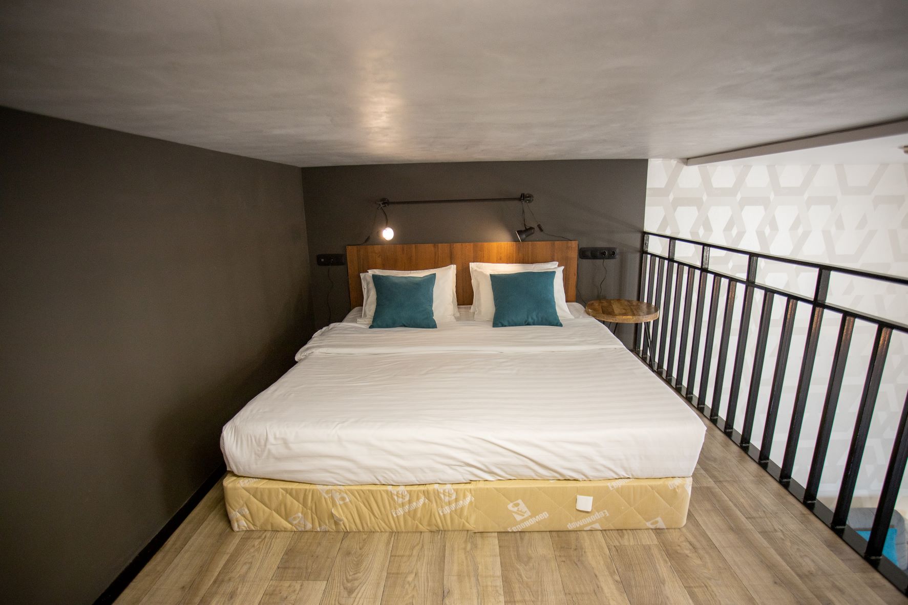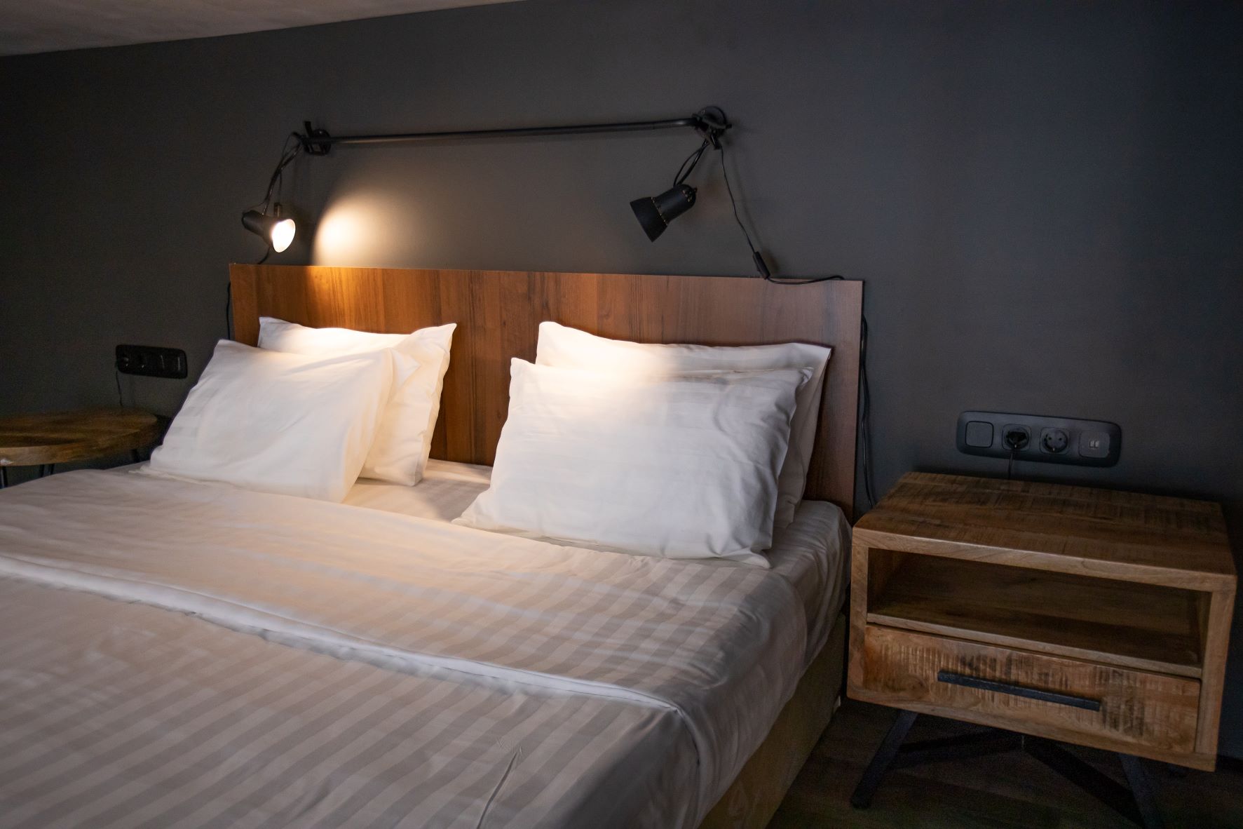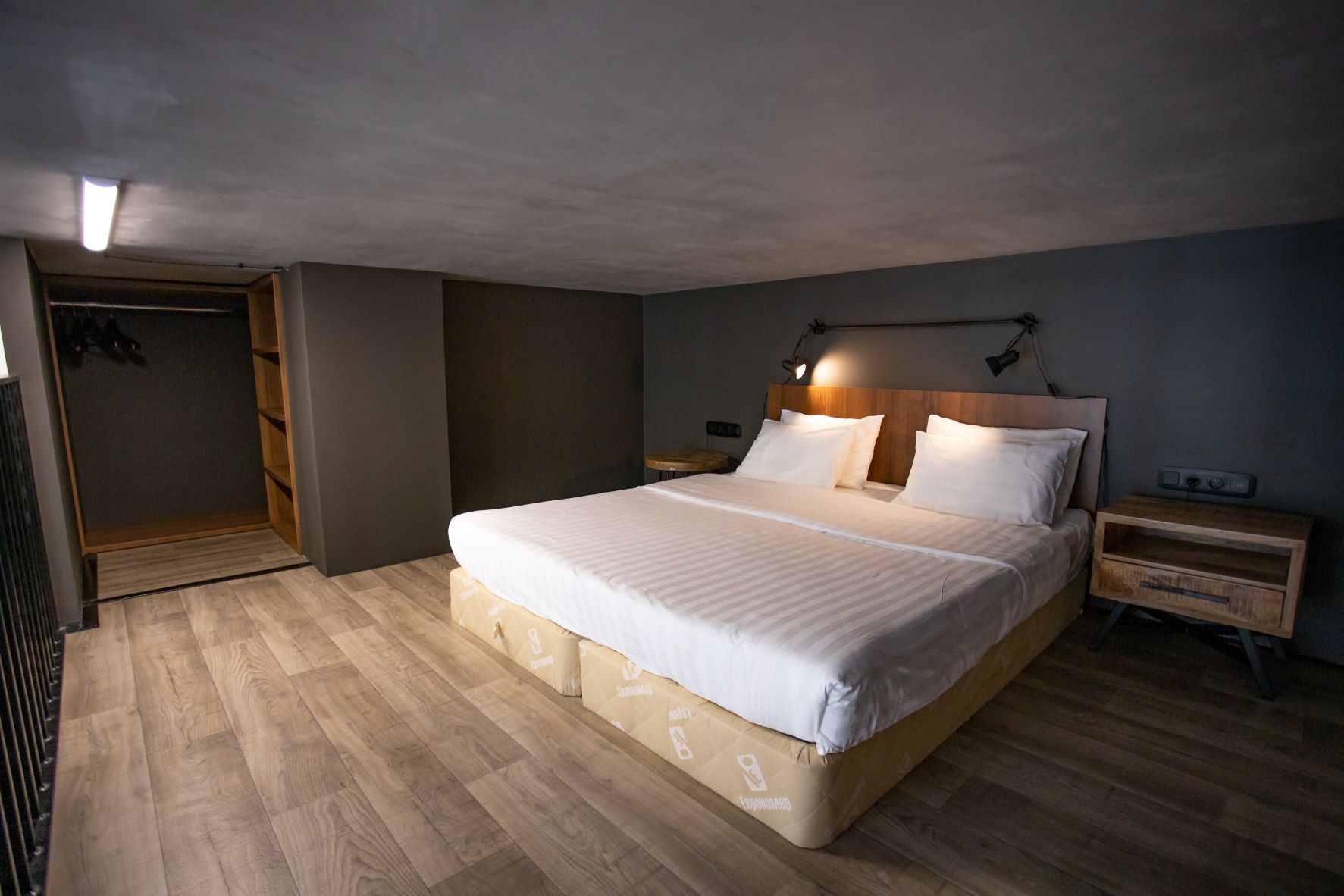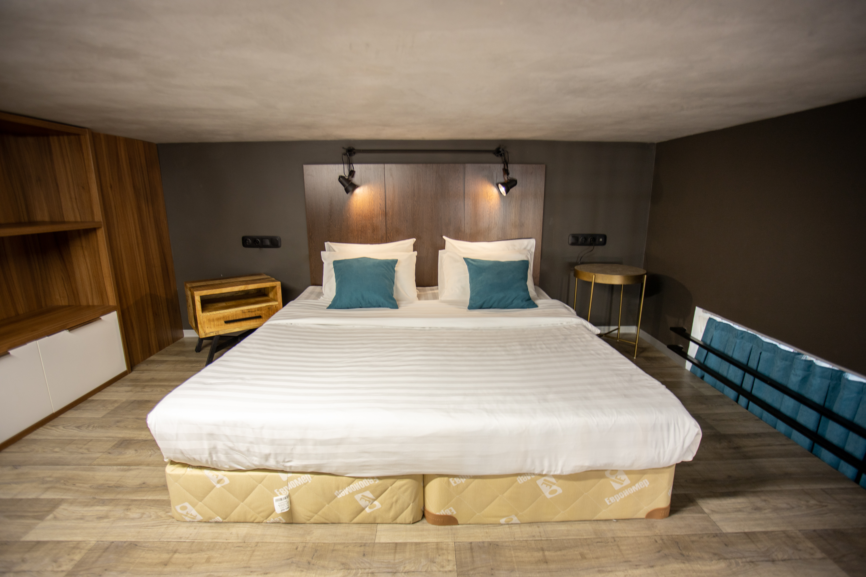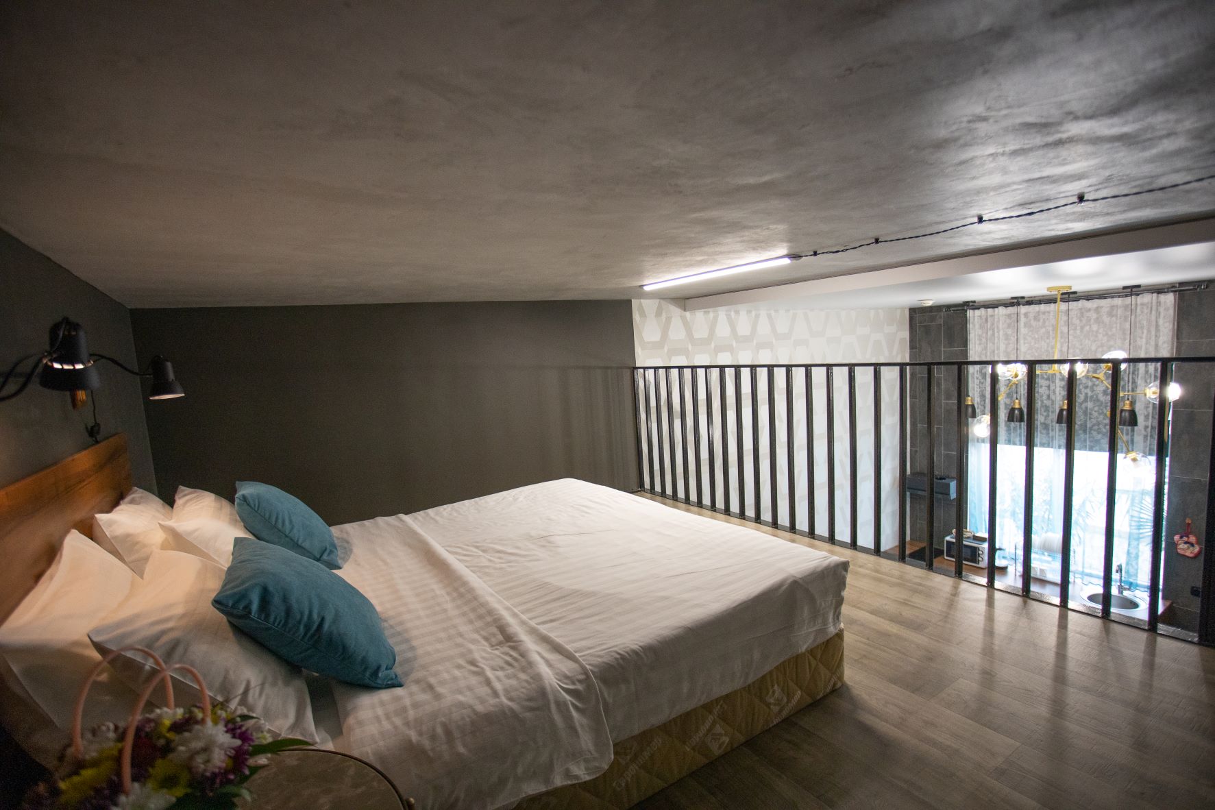 В номере: диван, зеркало, кресло-кровать, кровать двуспальная, кухонная мебель, прикроватные тумбочки, стол, стулья, шкаф встроенный, гладильная доска, кофемашина, набор посуды, плита электрическая, сплит-система, телевизор ЖК, утюг, холодильник, электрочайник