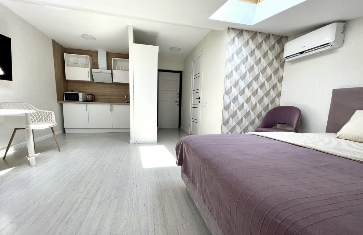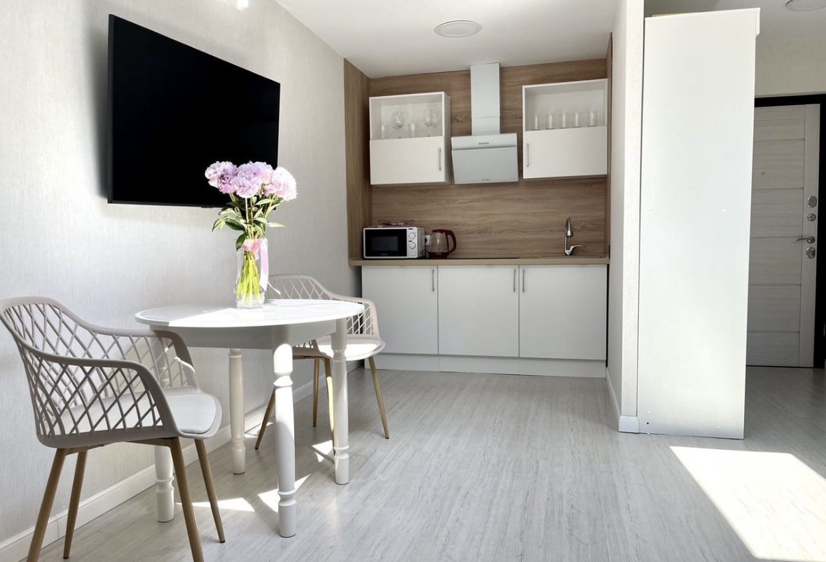 Под жилым комплексом много магазинов продуктовых и овощных, также интернет магазины пунктов выдачи, Перекрёсток, строительный магазин, аптека и кафе.Апартаменты оборудованы удобными спальными местами и кухней, есть стиральная машина и сушилка для белья, утюг и гладильная доска, санузел душем и феном. Та же среди услуг - высокоскоростной Wi-Fi. На территории есть скамейки для отдыха, пальмы, цветы, беседки, детская площадка, теннисный корт, спортивная площадка.