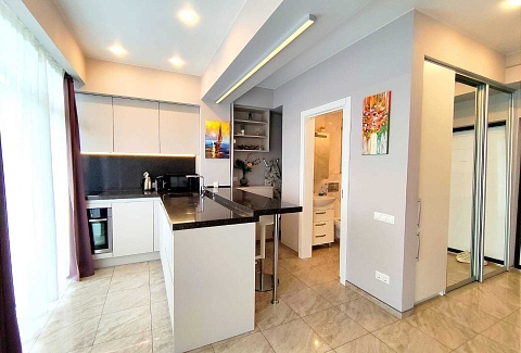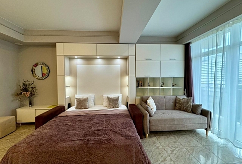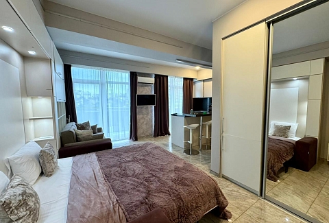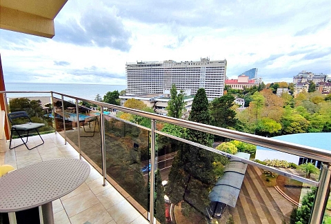 Современные апартаменты у моря в комплексе "Марина-Парк".️ВАЖНО: ОПЛАТА ФИНАЛЬНОЙ УБОРКИ ОПЛАЧИВАЕТСЯ ОТДЕЛЬНО 3000р, НЕ ЗАВИСИМО ОТ СРОКА ПРОЖИВАНИЯ️Мебель повышенной комфортностичудесный вид на море.️полное оснащение (wifi, кондиционер, стиральная машина)️полноценная кухня-студия с посудомоечной машиной и всеми необходимыми принадлежностями для приготовления пищи.️ В квартире могут разместиться 3 гостя: двуспальная кровать-трансформер + удобный односпальный диван.️Чистое белье и полотенца.️️ВАЖНО: ОПЛАТА ФИНАЛЬНОЙ УБОРКИ ОПЛАЧИВАЕТСЯ ОТДЕЛЬНО 3000 РУБЛЕЙ.До моря - 2 мин ходьбы через красивый парк,-рядом подогреваемый круглогодичный бассейн в отеле "Жемчужина", Зимний театр и Дендрарий.️В пешей доступности: остановка транспорта, супермаркеты, кафе и рестораны, фитнес-центр.В доме: паркинг, салон тайского массажа.️Вся инфраструктура заслуженно любимого в Сочи района — «Светлана».️Парковка у дома.