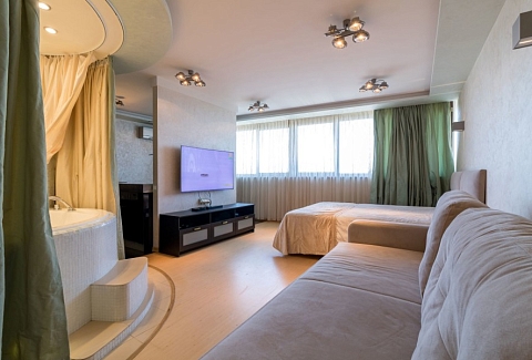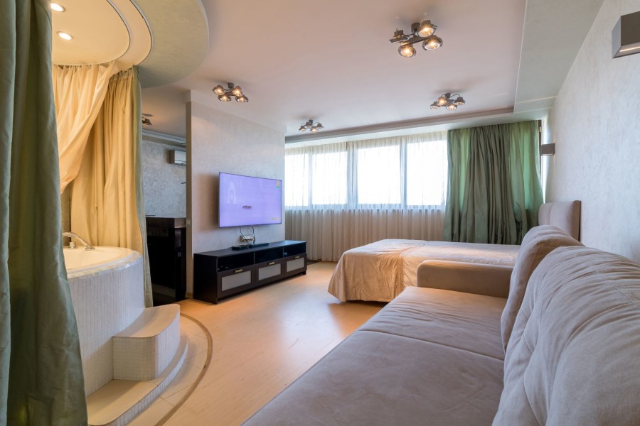 Расстояние до международного аэропорта Сочи (Адлер) составляет 23 км. В распоряжении гостей 1 спальня, 1 ванная комната с большая ванна, оборудованная кухня с микроволновой печью и холодильником. В апартаментах установлены стиральная машина и телевизор с плоским экраном и спутниковыми каналами. В апартаментах предоставляются полотенца и постельное белье. Гости могут пользоваться гидромассажной ванной.К услугам гостей — бесплатный Wi-Fi, кондиционер и такие бытовые удобства, как духовка, посудомоечная машина, и чайник. Из окон открывается вид на город и море.За дополнительную плату организуется трансфер от/до аэропорта.