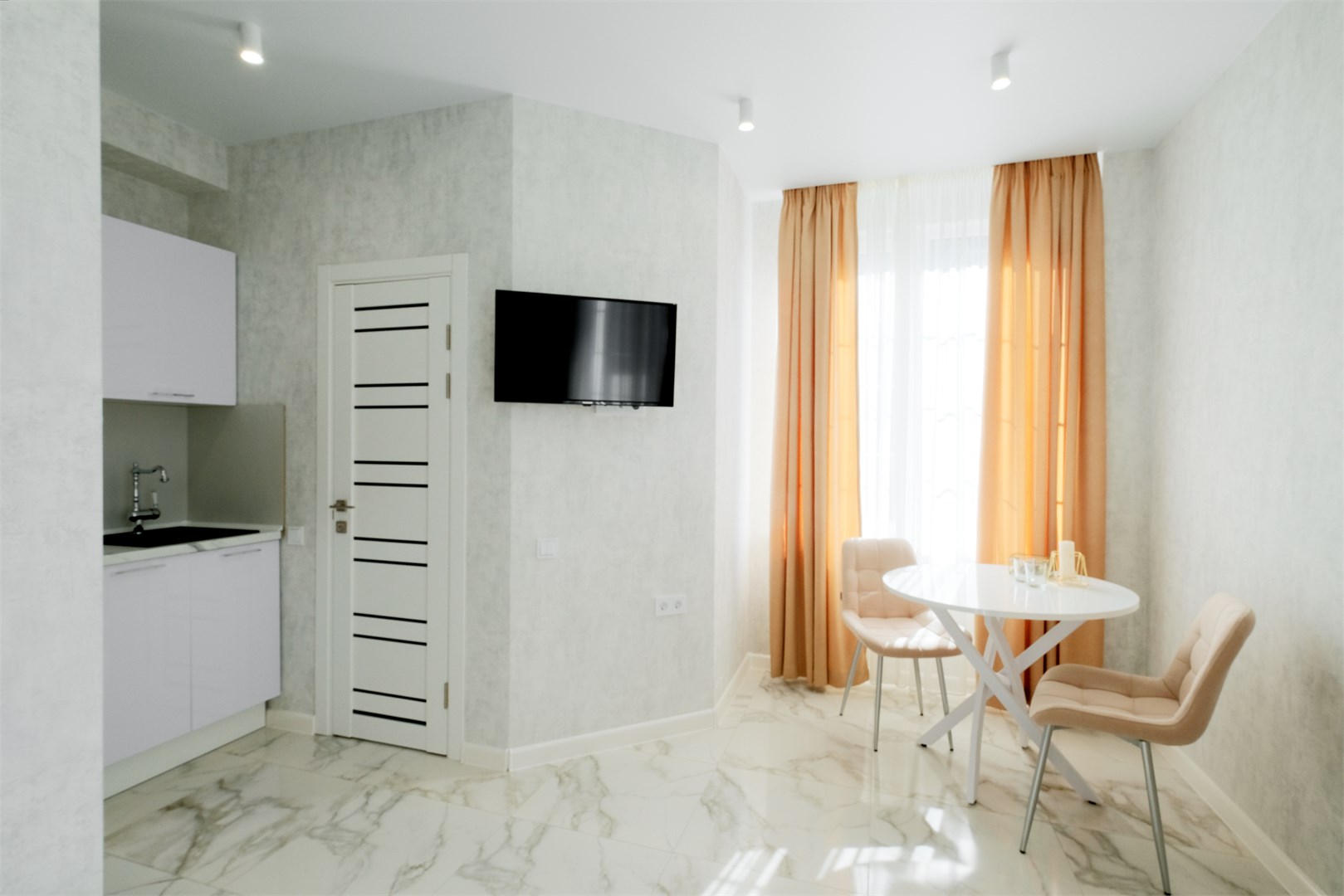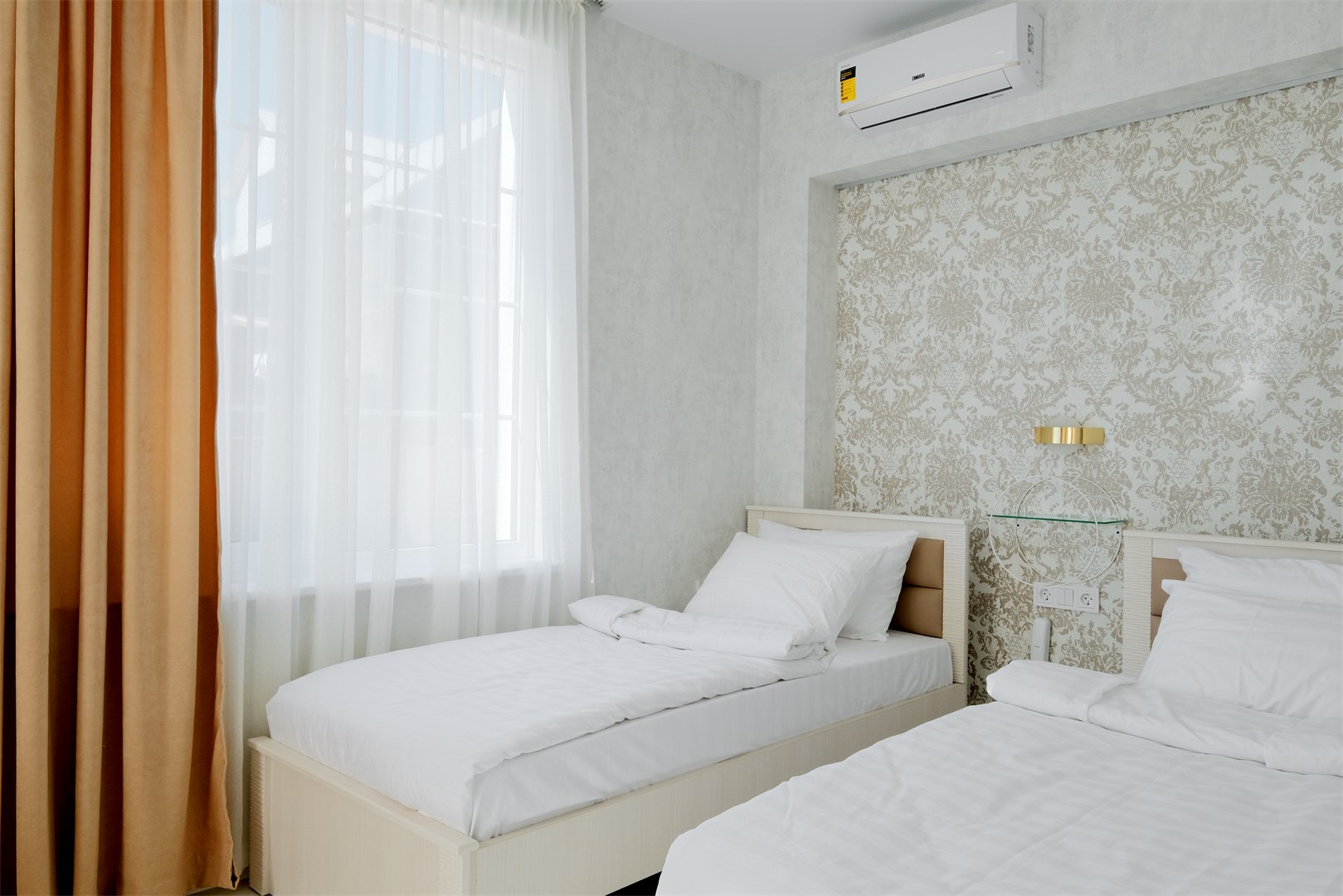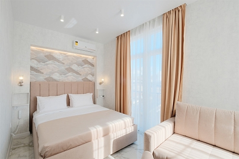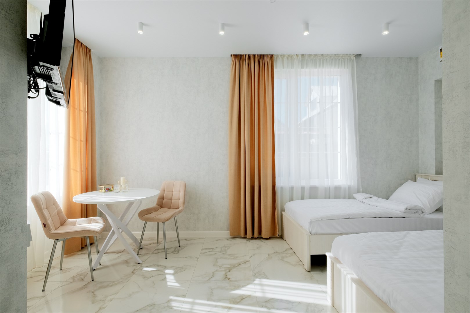 Добраться в аэропорт Сочи удастся за 10 минут на автомобиле. Курорт Роза хутор находится в 50 километрах от гостевого дома.Комфортабельные номера отвечают всем современным требованиям. Комнаты выполнены в классическом стиле, в светлых оттенках. В каждом номере есть индивидуальная система климат-контроля, работает стабильный Wi-Fi, есть электрический чайник и все для приготовления теплых напитков. Мебель современная, удобная. Ванная комната оснащена стильной душевой кабиной, здесь есть комплект полотенец, тапочки, косметические принадлежности и фен. Окна и балконы некоторых из номеров открывают великолепный вид на море.В отеле есть мини-кухня для самостоятельного приготовления еды. Можно заказать блюда и напитки в номер или посетить один из близлежащих ресторанов. На территории гостевого дома есть большой подогреваемый бассейн. Для любителей горячих водных процедур предусмотрена сауна. Стойка регистрации работает в круглосуточном режиме, есть парковка для автовладельцев. Семьи с детьми оценят установленную не территории детскую площадку.