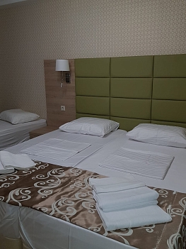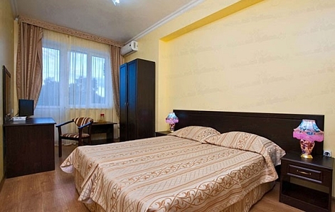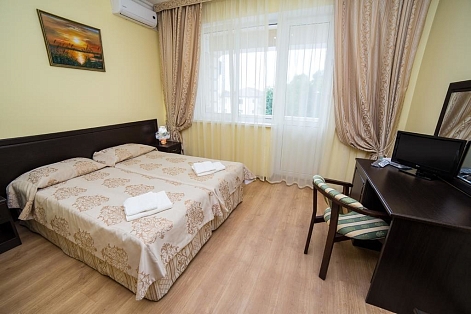 В номере: кровати односпальные /одна двуспальная кровать, прикроватные тумбочки, стол, шкаф, кондиционер, мини-холодильник, набор посуды, сейф, сплит-система, телевизор ЖК