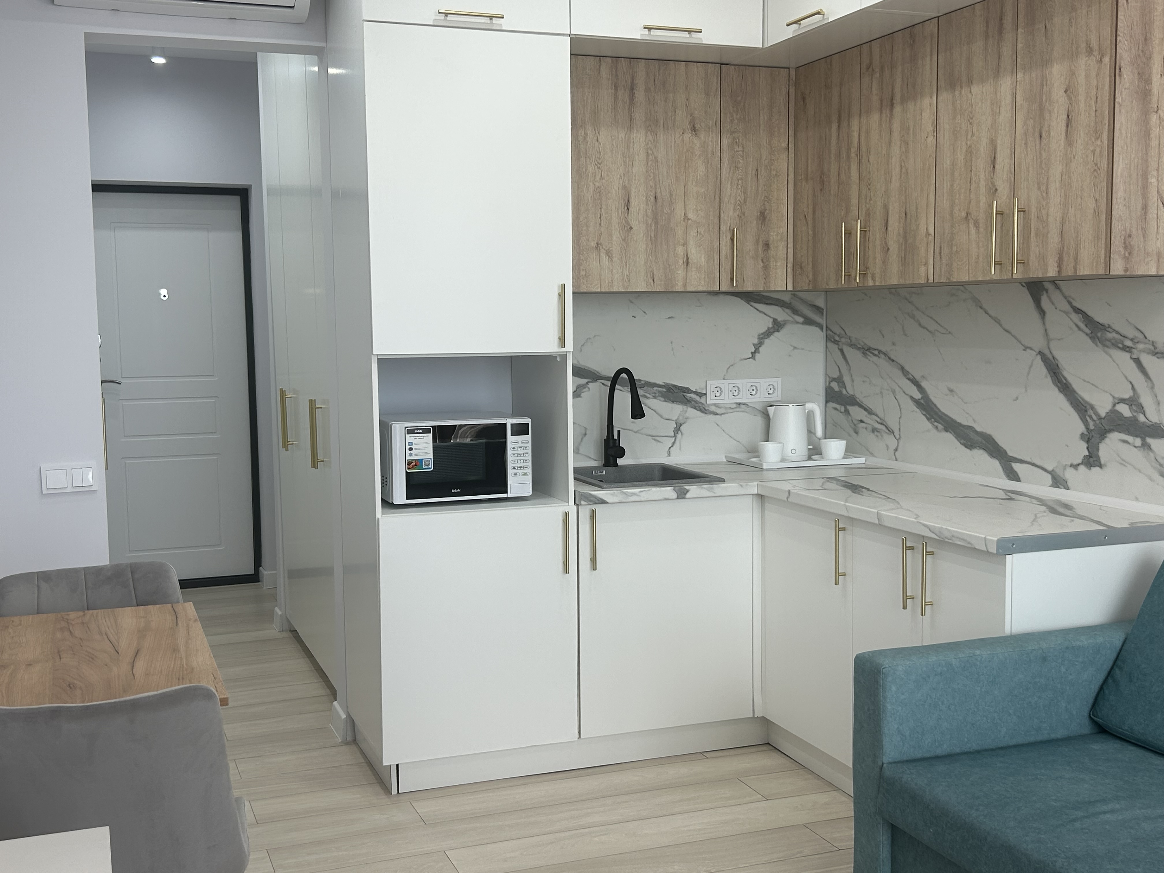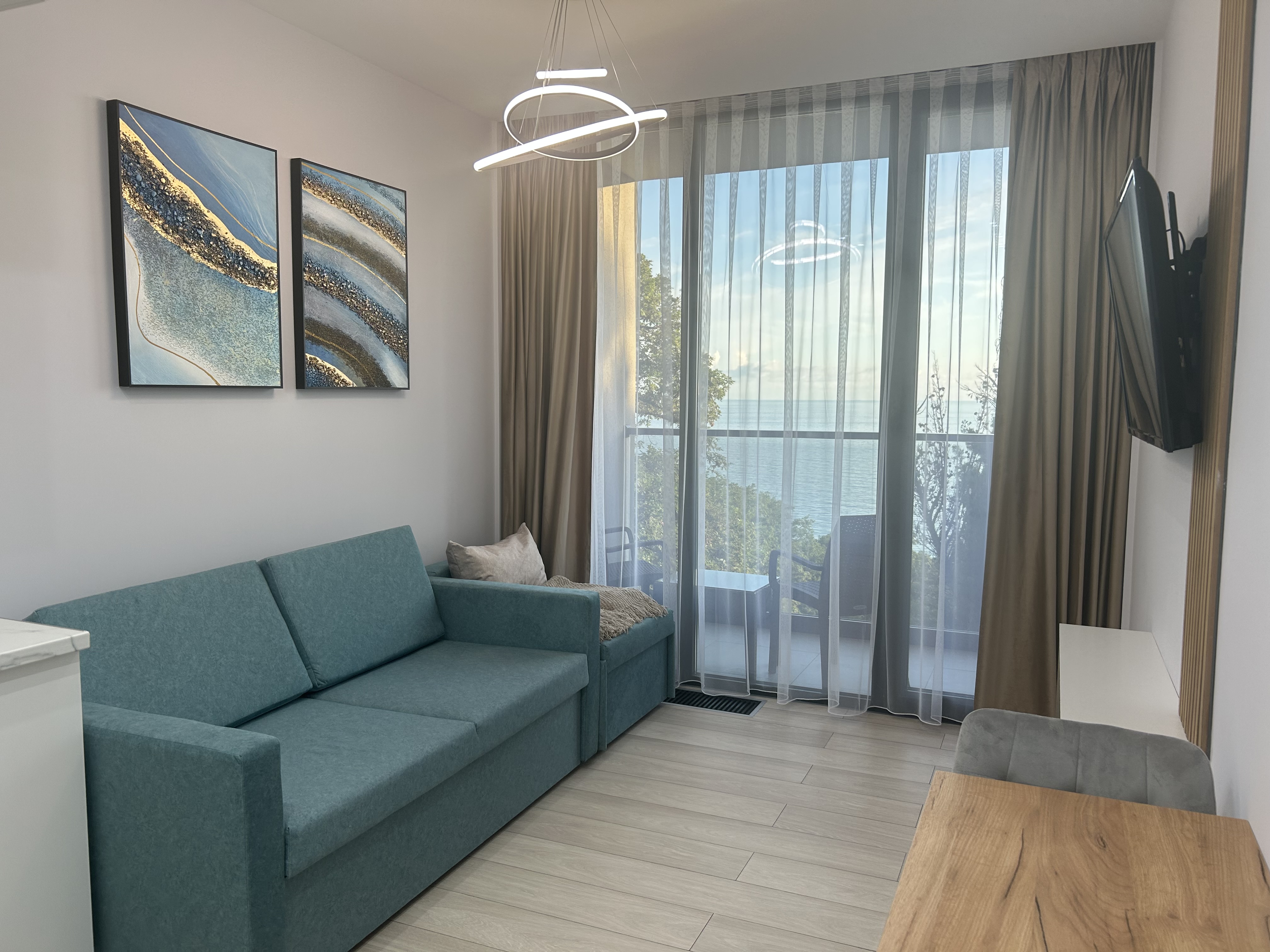 Ванная комната оборудована душем и полным набором туалетных принадлежностей. Идеальный выбор для тех, кто ценит комфорт и уединение.К услугам гостей открытый бассейн, охраняемая парковка, для маленьких гостей на территории предоставляется детская площадка. До ближайшего галечного пляжа можно дойти всего за 4 минуты.