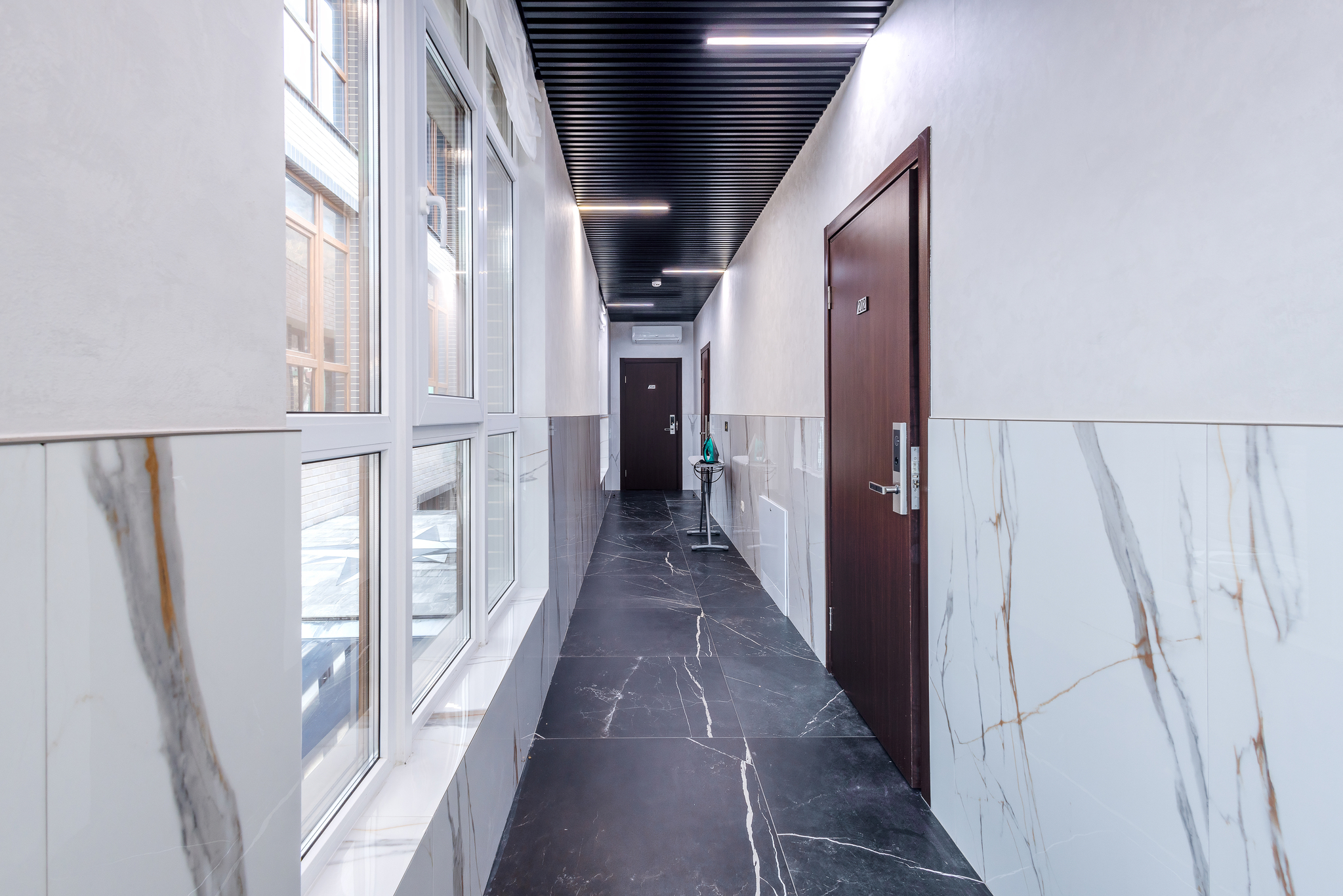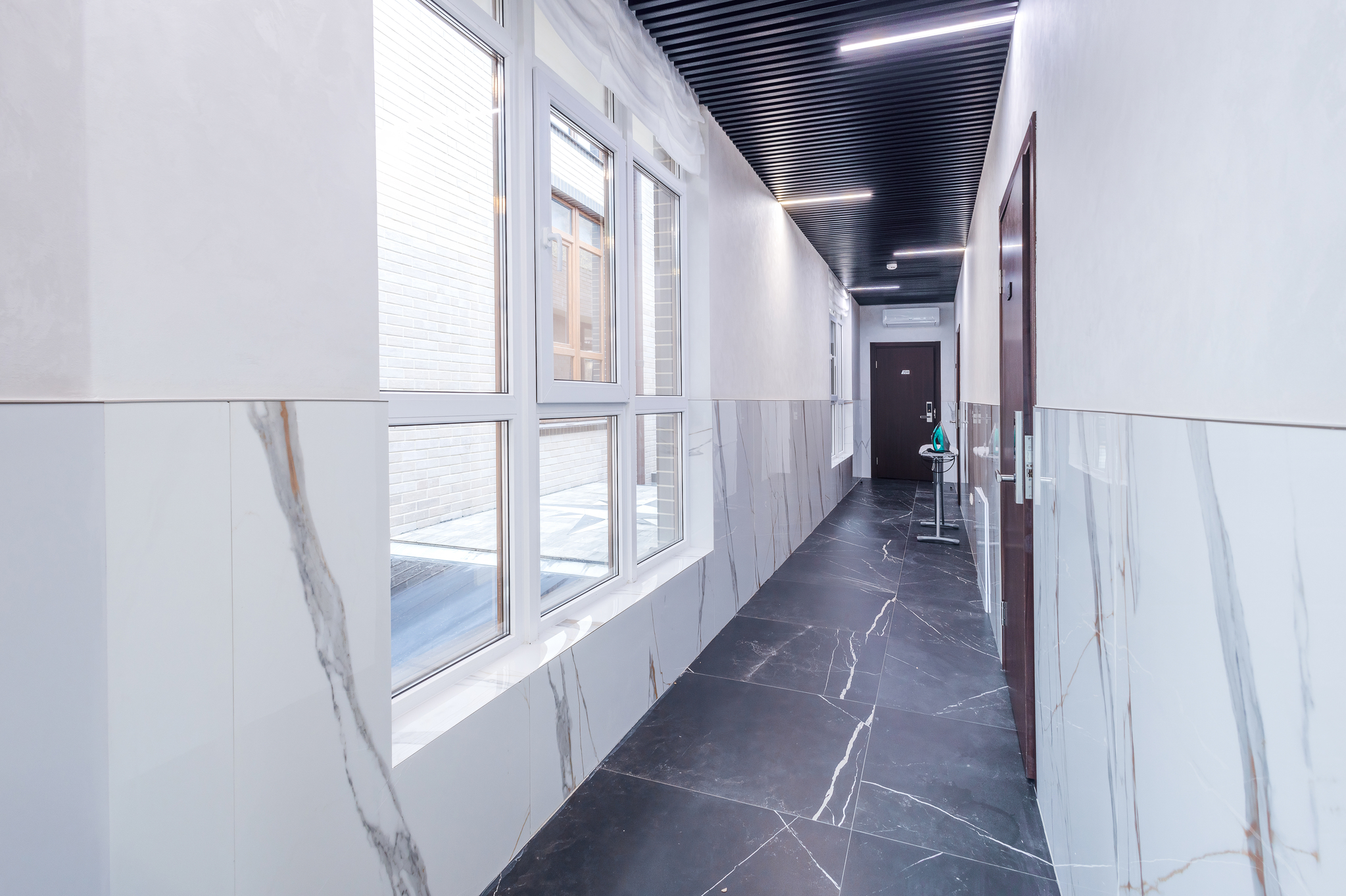 - утюг и гладильная доска на этаже