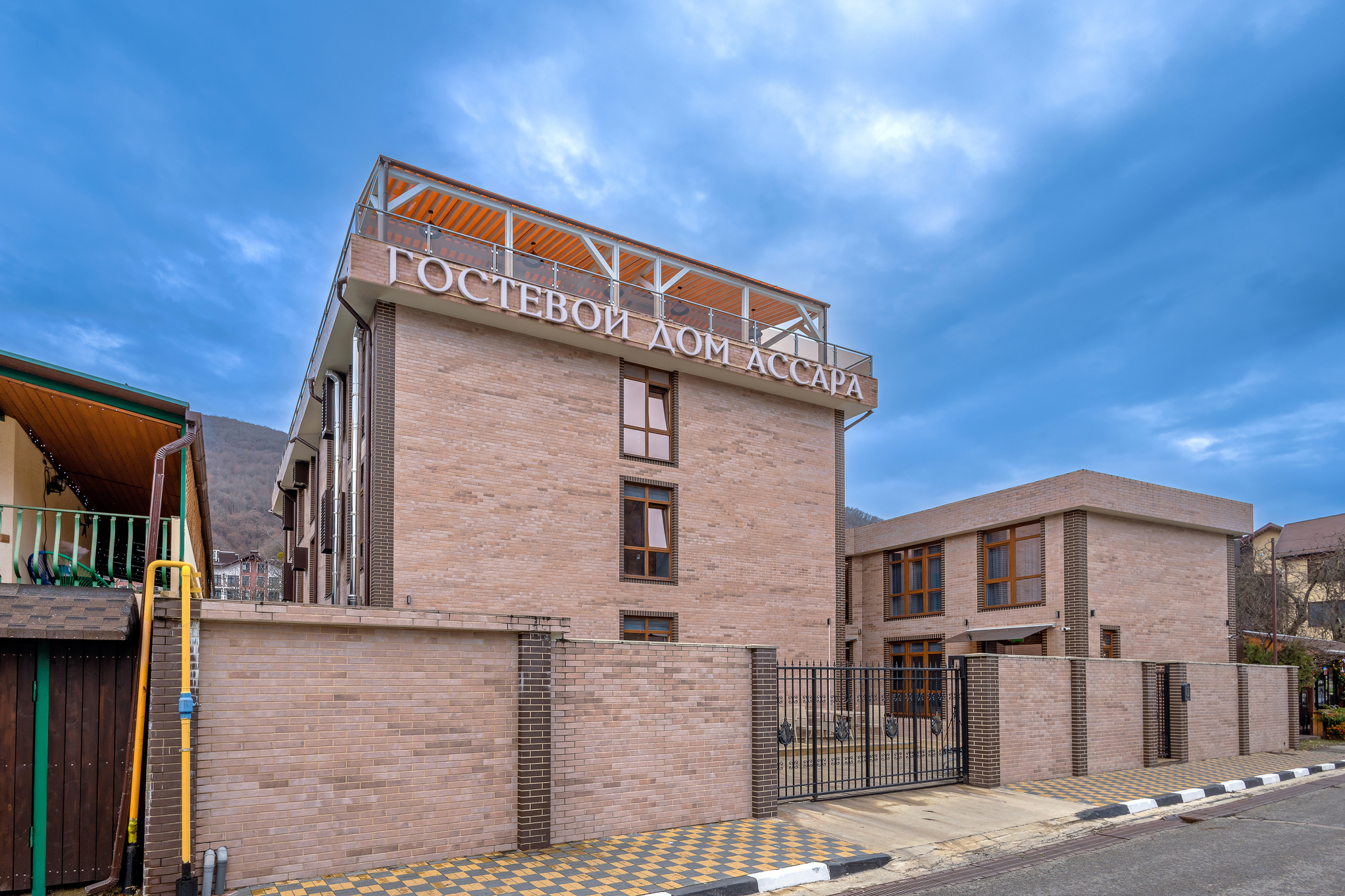 Гостевой дом «Ассара» в поселке Эстосадок — место отдыха для тех, кто ценит комфорт и удобство на фоне красивой природы Красной Поляны. Неподалеку расположены ключевые достопримечательности и инфраструктура курорта, что делает его удобной базой для прогулок и развлечений.Номера оборудованы всем необходимым: от удобных кроватей, сплит-системы, мини-холодильника и современного телевидения до сейфа и электрического чайника. В гостевом доме предусмотрены полностью оборудованные санузлы с душевыми кабинами и фенами, а также удобства для отдыха: мягкие полотенца, халаты и тапочки.Гостевой дом предлагает своим посетителям ресторан с разнообразным меню и террасу на крыше, где можно наслаждаться потрясающими панорамными видами.