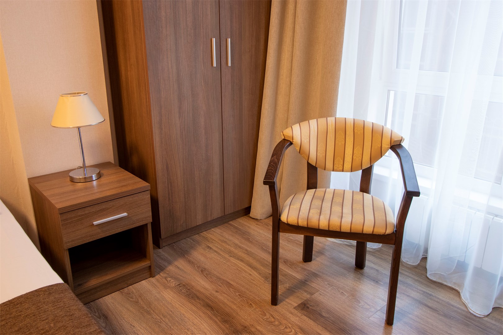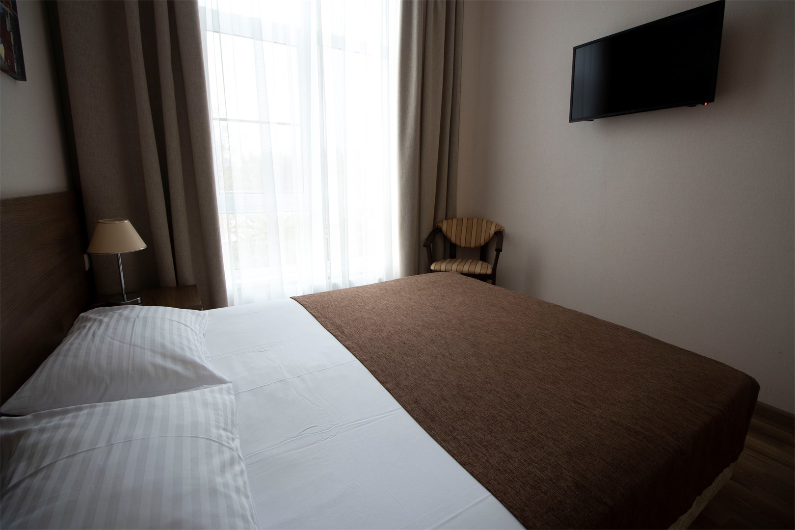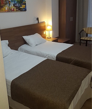 В номере: вешалка, зеркало, кресло, кровати односпальные /одна двуспальная кровать, прикроватные тумбочки, шкаф, кондиционер, телевизор, холодильник, чайный набор посуды, электрочайник