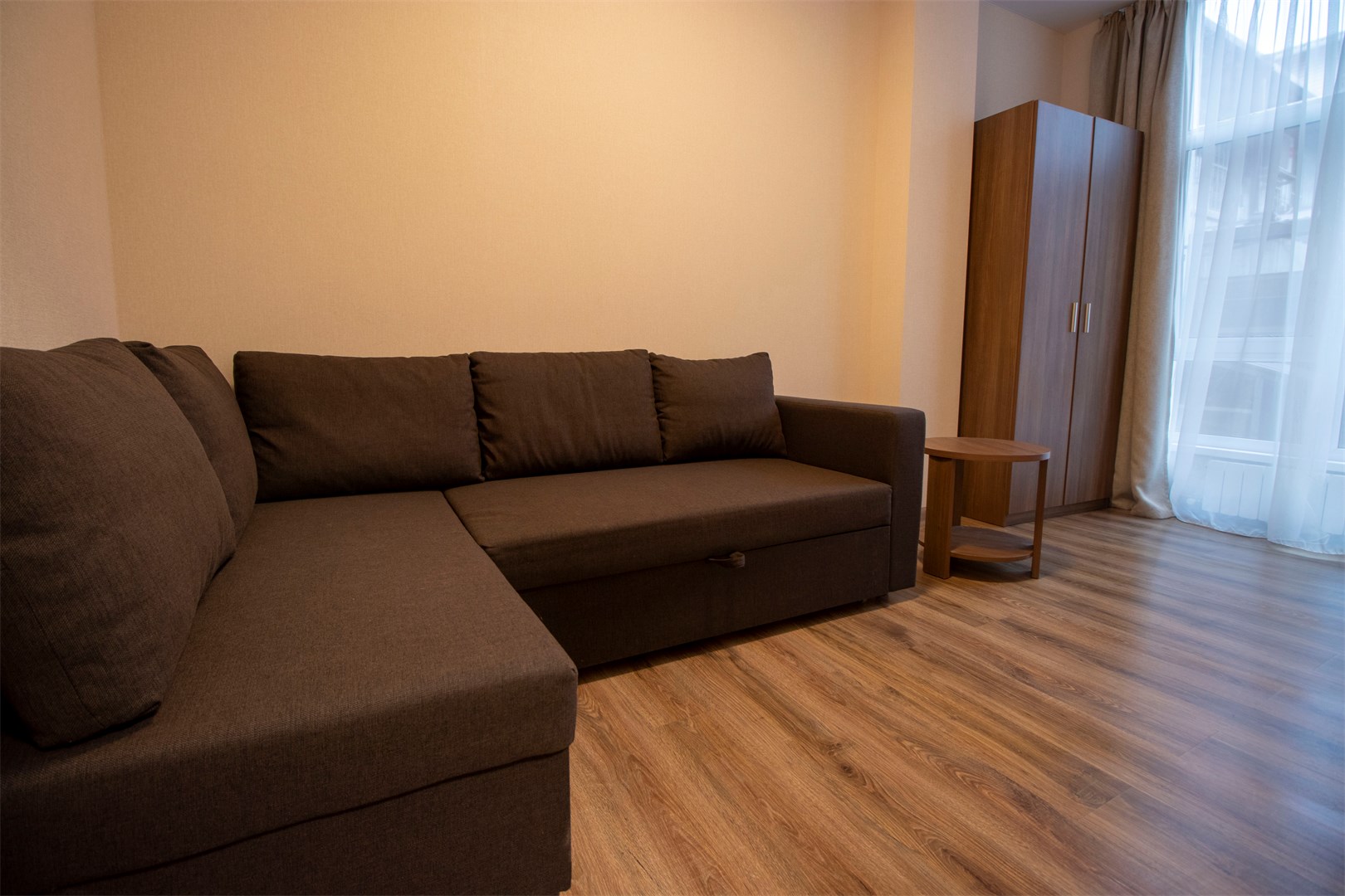 В номере: вешалка, диван, зеркало, кресло, кровати односпальные /одна двуспальная кровать, прикроватные тумбочки, стол, шкаф, кондиционер, телевизор, холодильник, чайный набор посуды, электрочайник