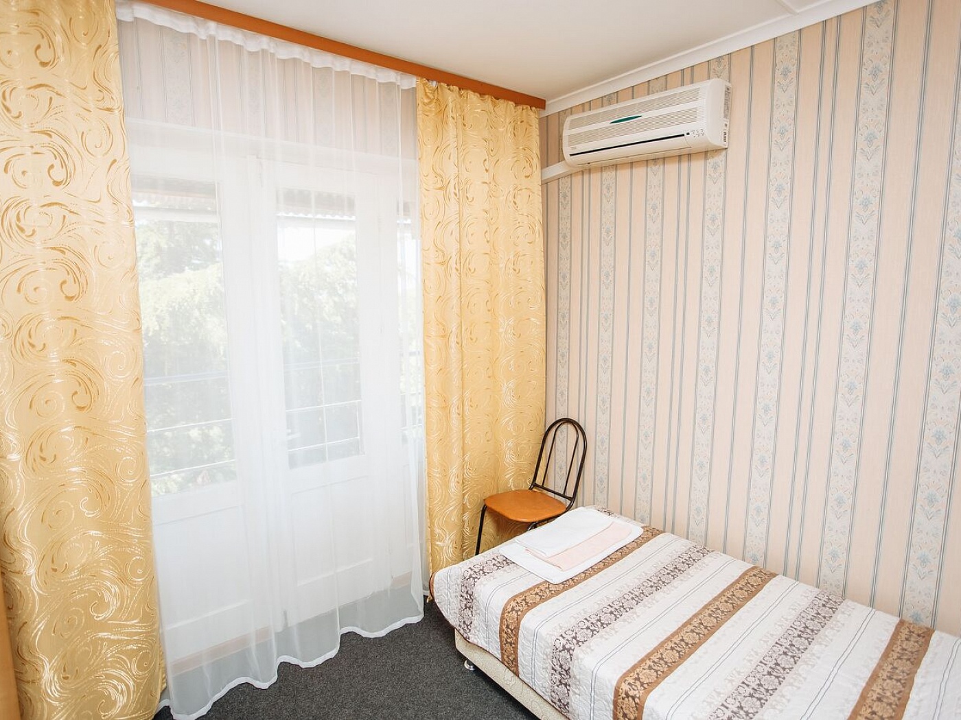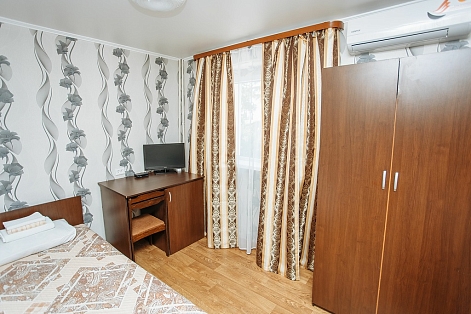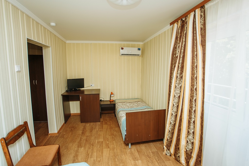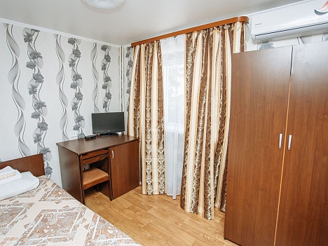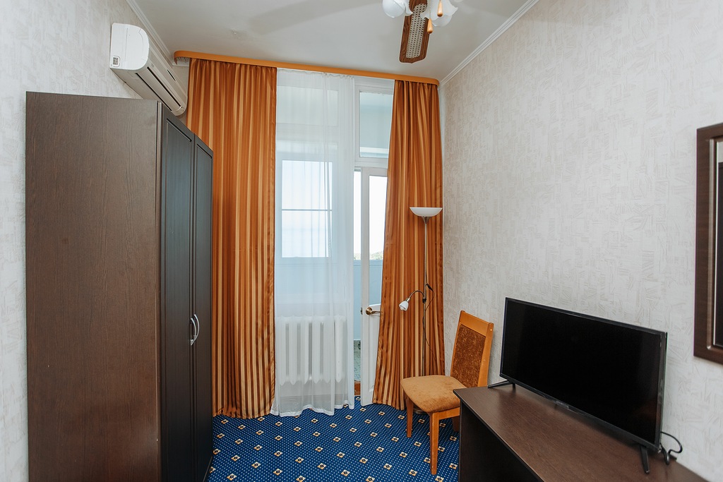 В номере: кровать односпальная, шкаф, кондиционер, телевизор, холодильник