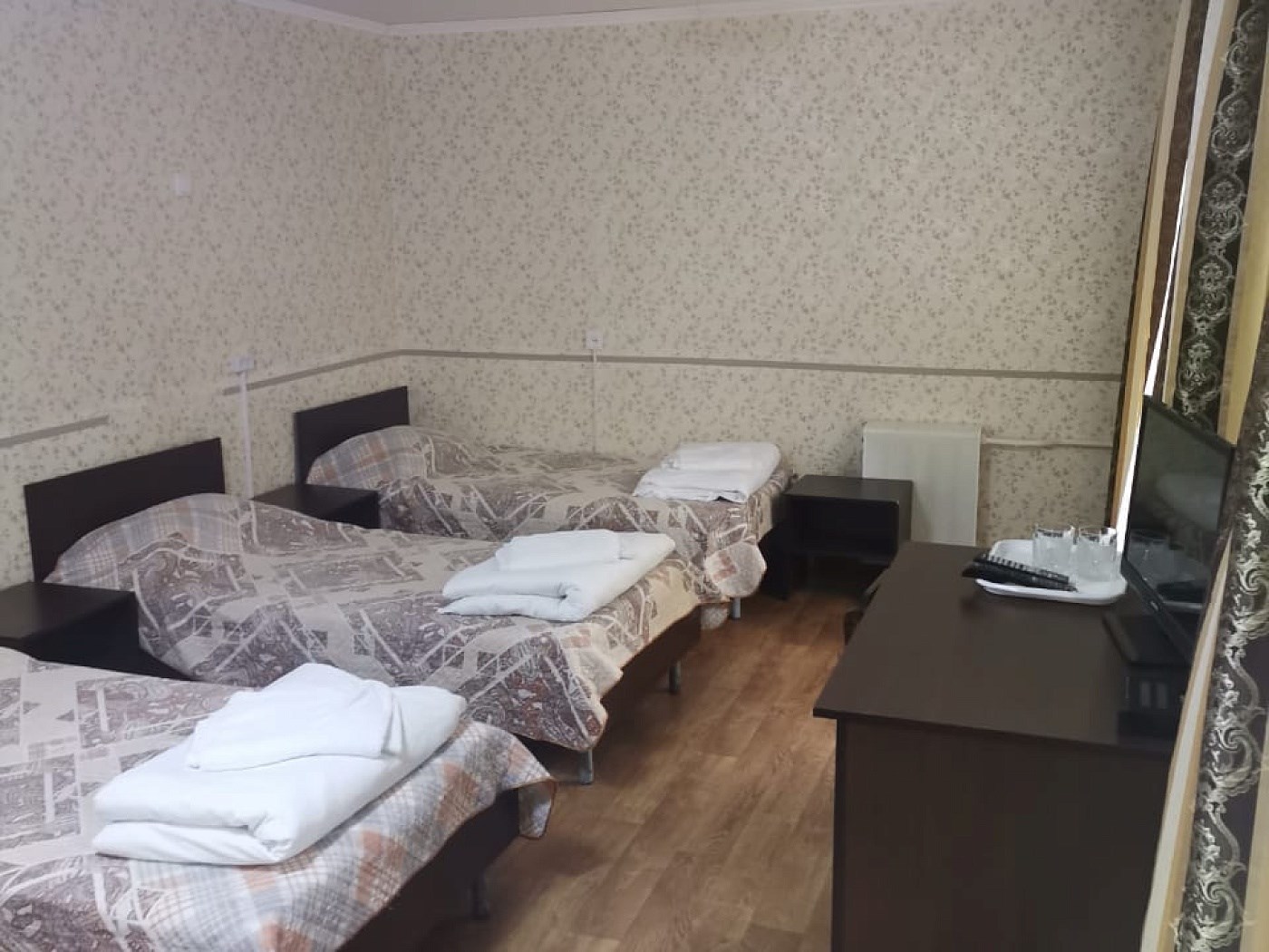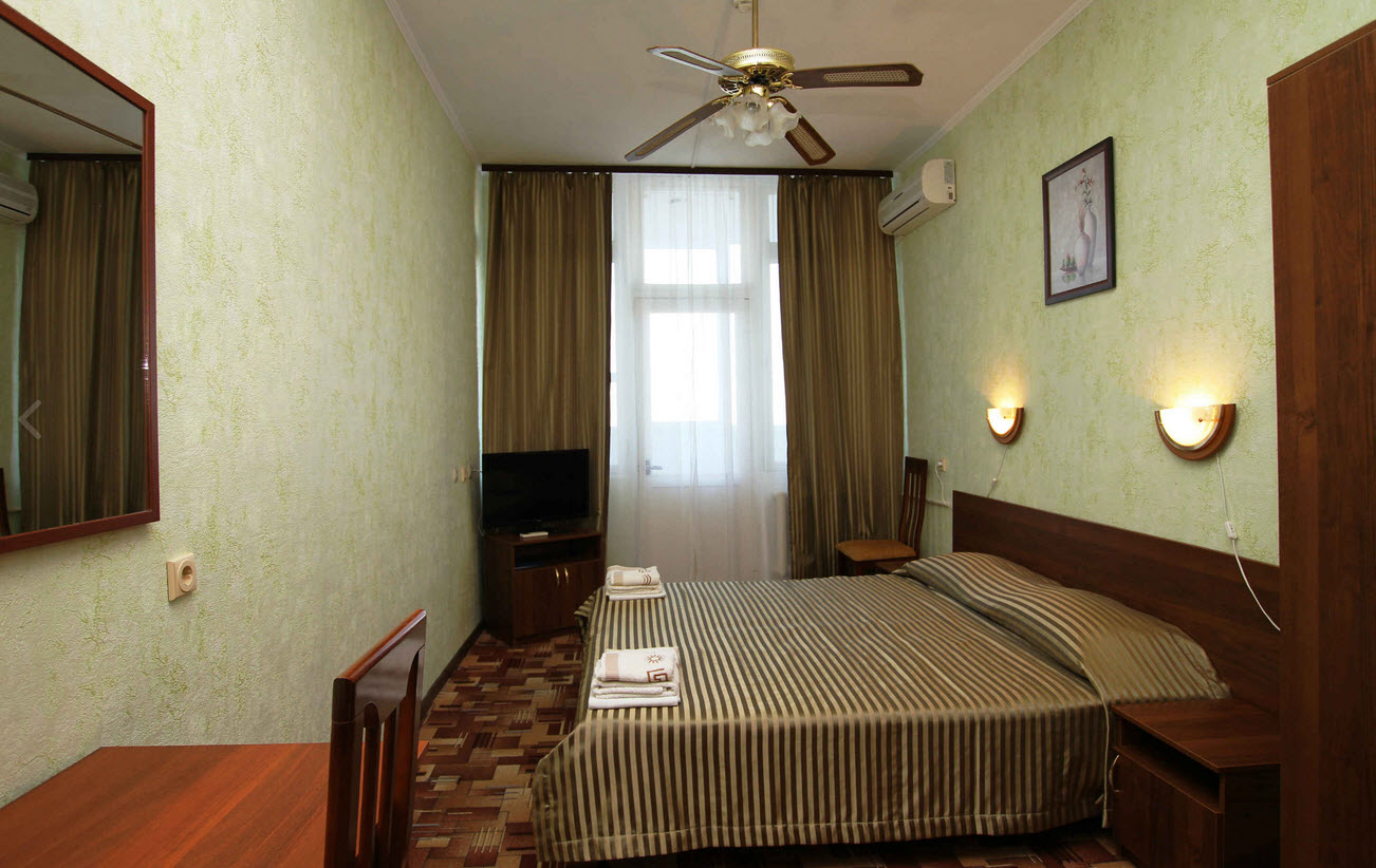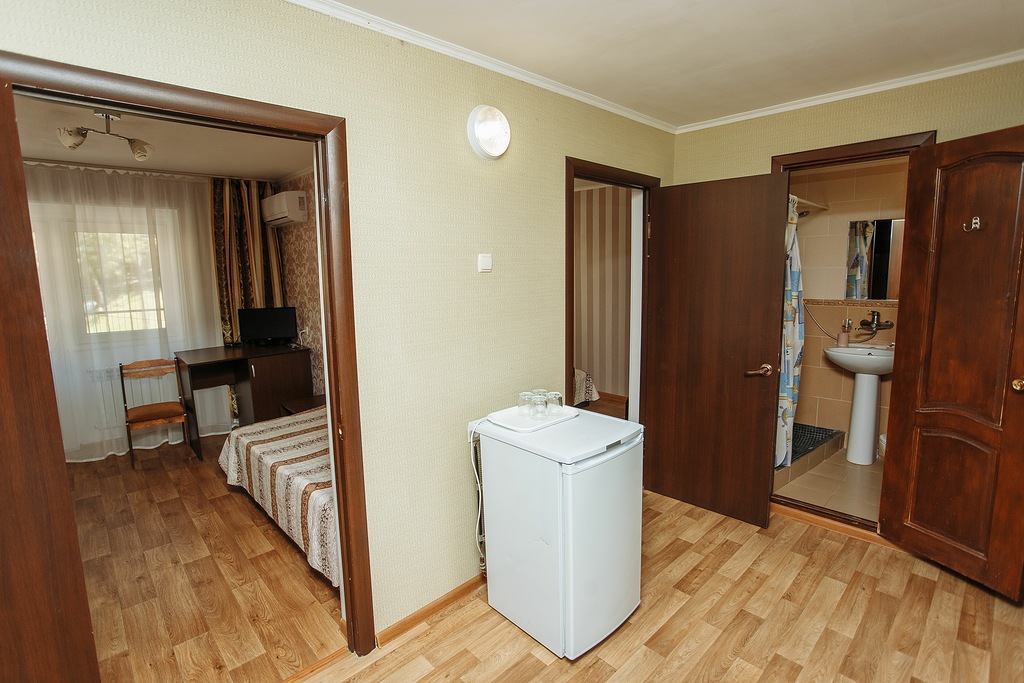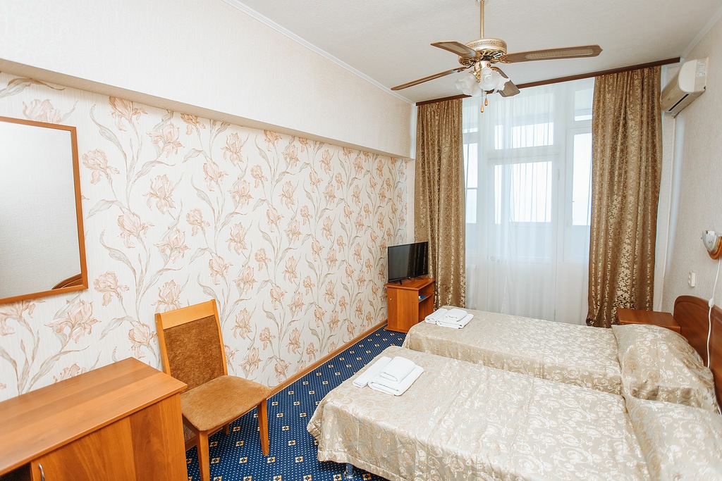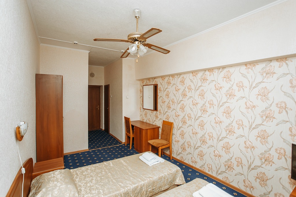 В номере: зеркало, кровати односпальные, вентилятор, мини-холодильник, телевизор