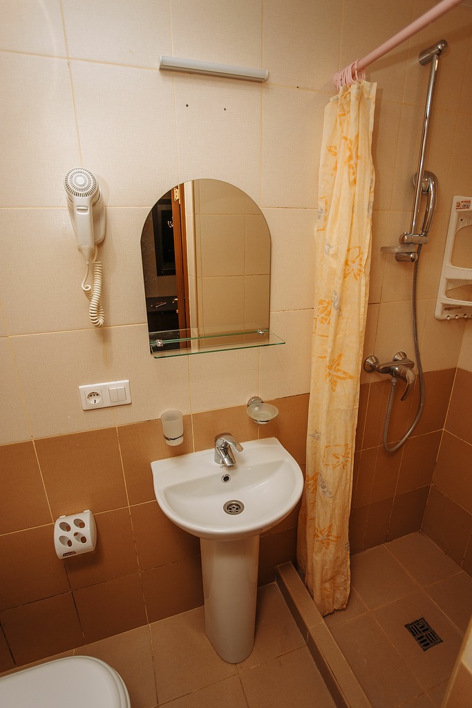 Санузел: с душем, туалетные принадлежности, фен