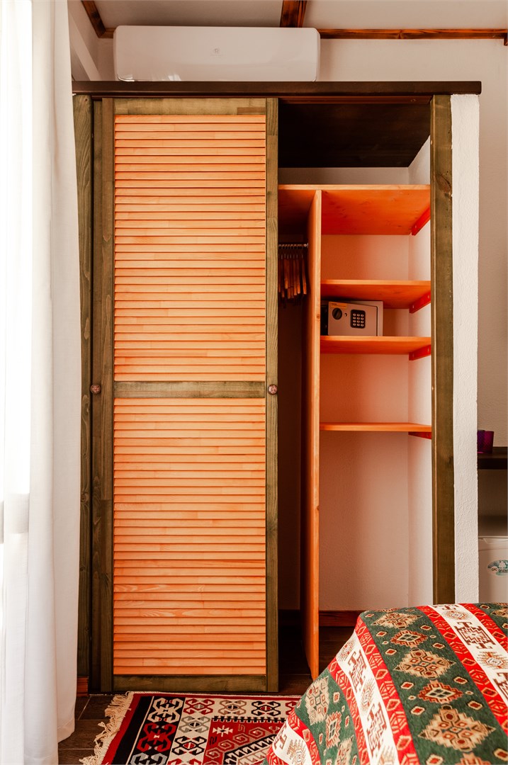 В номере: кровать двуспальная, кровать односпальная, прикроватные тумбочки, стол, стулья, шкаф, кондиционер, мини-холодильник, сейф, телевизор