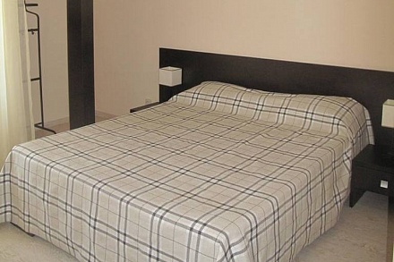 В номере: вешалка, зеркало, кресло-кровать, кровать двуспальная, прикроватные тумбочки, столик туалетный, шкаф, кондиционер, сейф, телевизор, телефон, холодильник, электрочайник