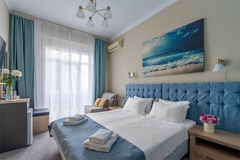Прекрасный бутик отель на улице Приморской в самом центер Сочи. Отель расположен близко ко всем основным достопримечательностям курорта Сочи, даря вам лёгкий доступ к лучшему, что может предложить: бары и рестораны, парки, музеи.Каждое утро можно начать с вдохновляющих видов на величественную морскую панораму прямо из окна. В каждом номере есть телевизор, кондиционер и холодильник.