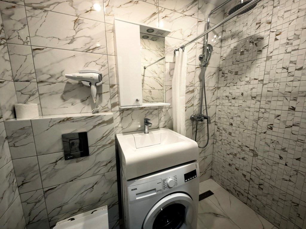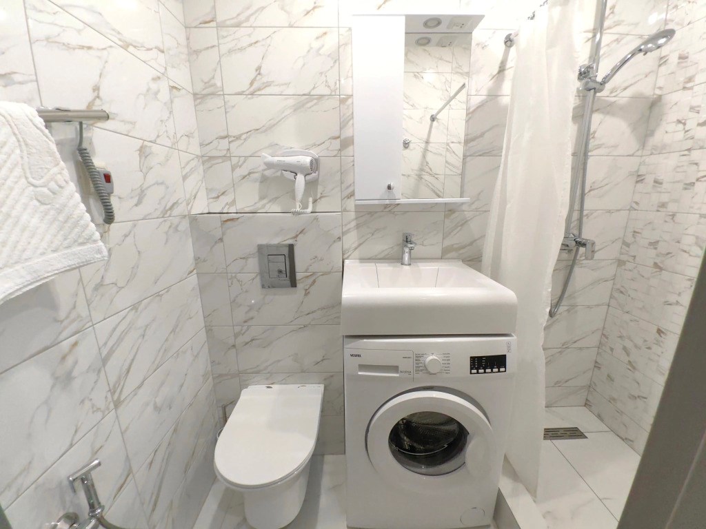 Санузел: с душем, туалетные принадлежности, фен