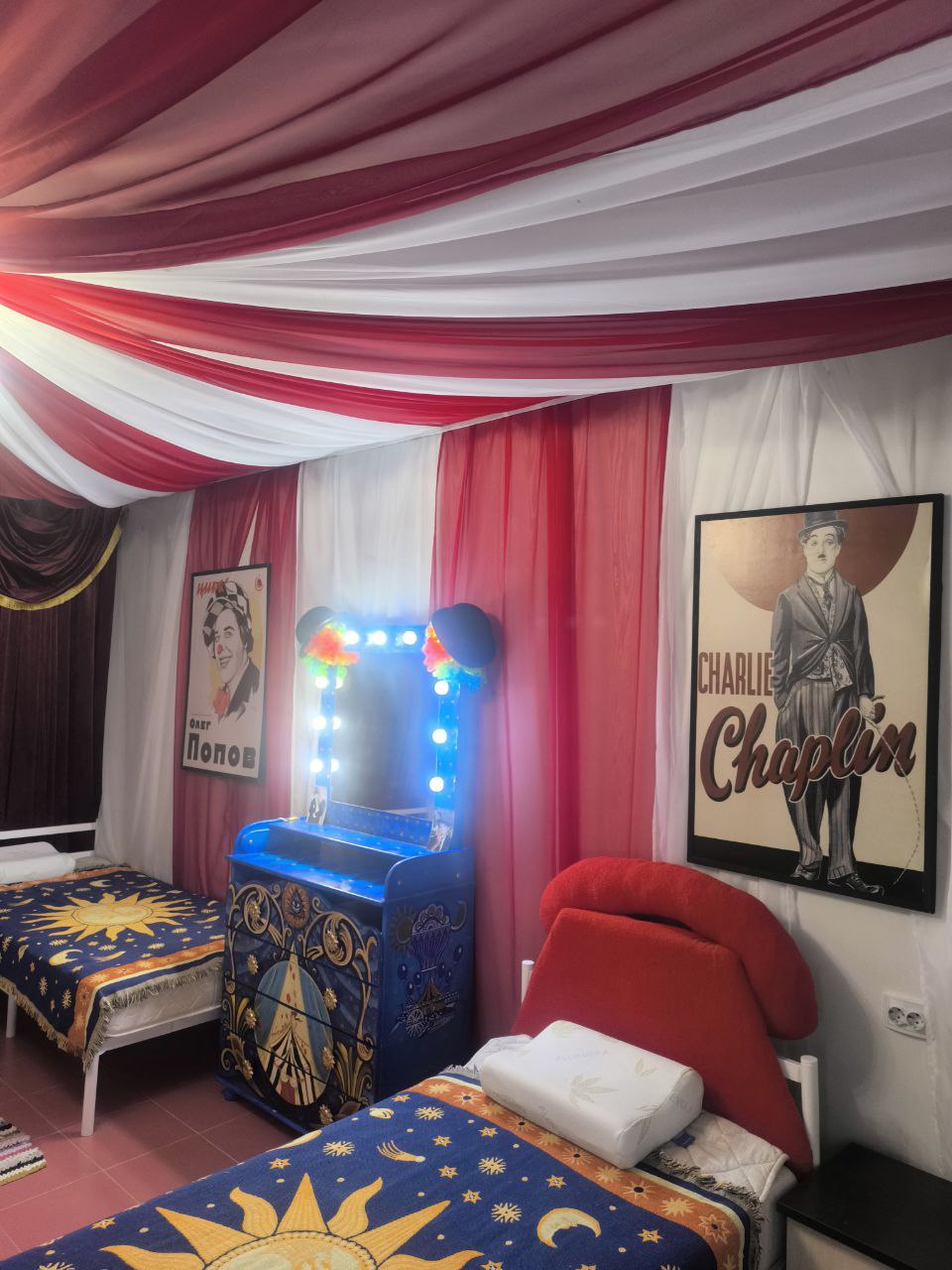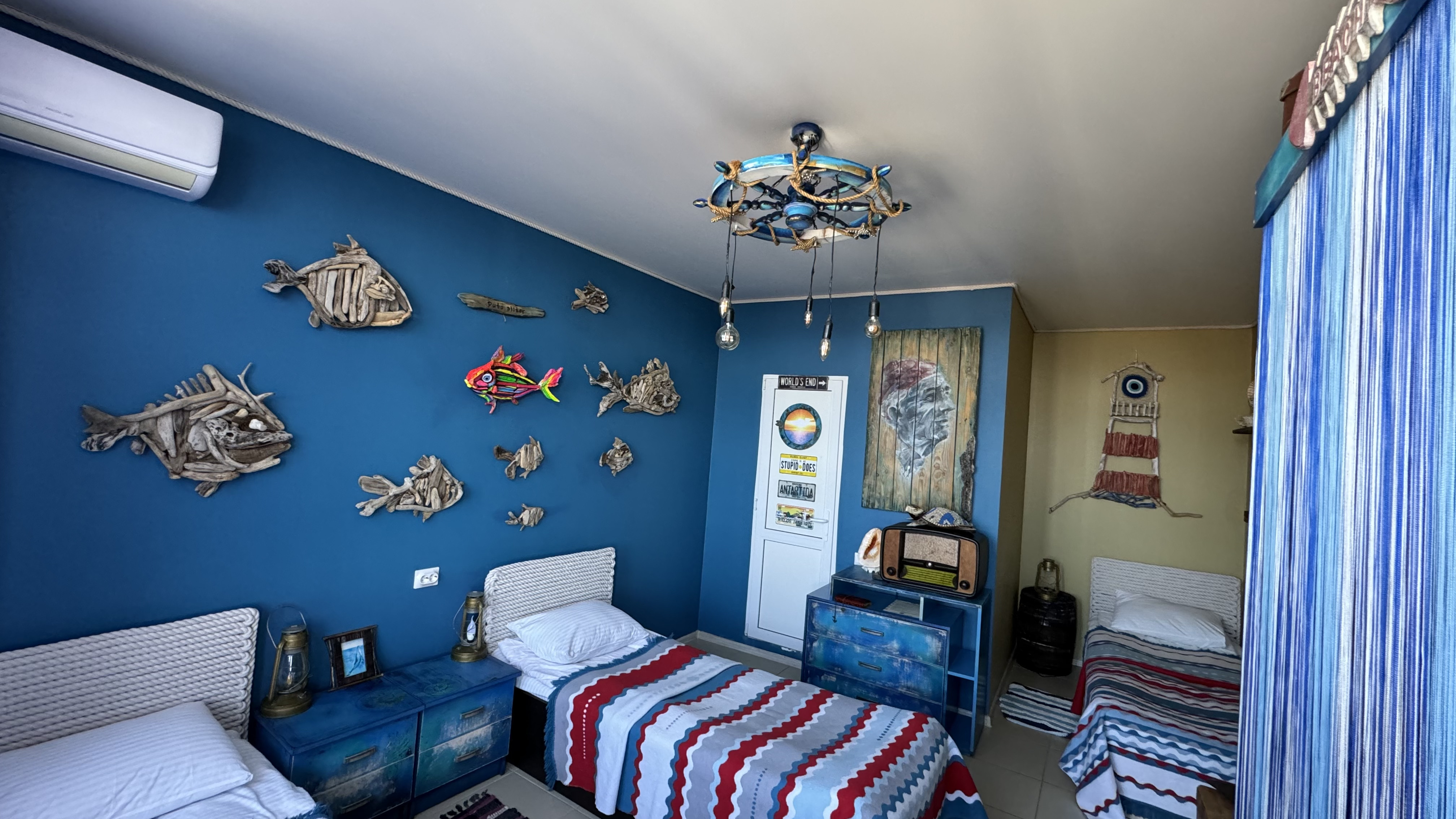 В номере: зеркало, комод, кровати односпальные, прикроватные тумбочки, шкаф, кондиционер