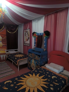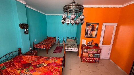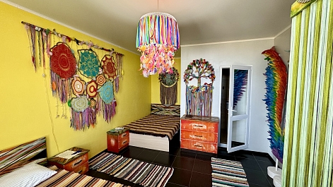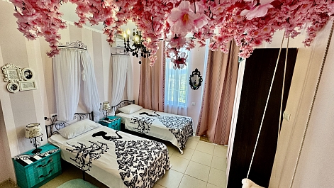 «Дом Радости» — это как загородный дом мечты, где можно отдохнуть душой и телом, отвлечься от суеты, насладиться природой и найти внутреннюю гармонию. Ретрит-центр основан Митей Ефимовым — клиническим психологом, амбассадором йоги смеха в России. В гостевом доме создана атмосфера, где каждый гость чувствует себя частью большой, дружной семьи, где витает тепло, доброта и радость. Всего 15-20 минут пешей прогулки расположен пляж, а ежедневные шаги до моря становятся частью здорового ритуала.Каждая комната в гостевом доме уникальна по стилю и оформлению, все они оснащены базовыми удобствами для комфортного отдыха.В распоряжении гостей — бассейн с видом на море, спортивная площадка для волейбола и баскетбола, две панорамные террасы для отдыха и загара и просторный зал для занятий. Для семей с детьми обустроена игровая зона, а для вечернего досуга — летний и зимний кинотеатры, а также зона для пенной вечеринки. На территории есть фруктовый сад, гамаки для отдыха, теннисный стол, инвентарь для активного отдыха и настольные игры.Каждый день в ретрит-центре проводятся множество занятий по различным практикам, позволяющим гостям снять стресс, перезагрузиться и укрепить здоровье.