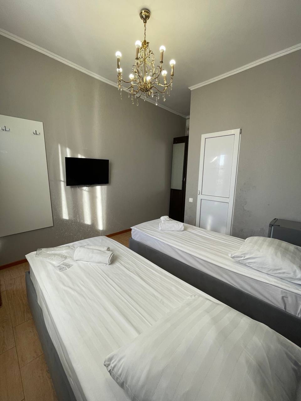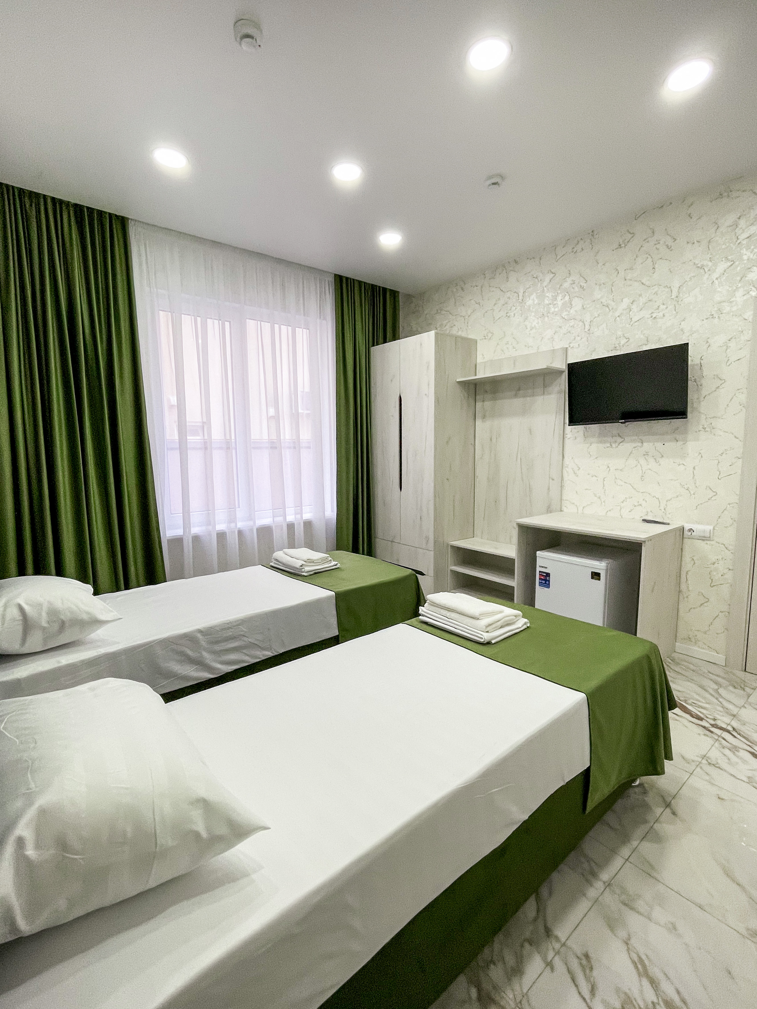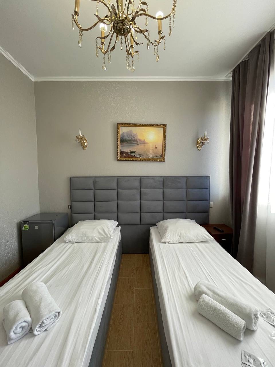 В номере: вешалка, зеркало, кровати односпальные, прикроватные тумбочки, шкаф, кондиционер, мини-холодильник, телевизор ЖК