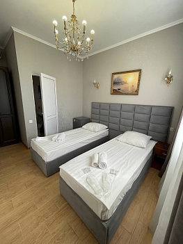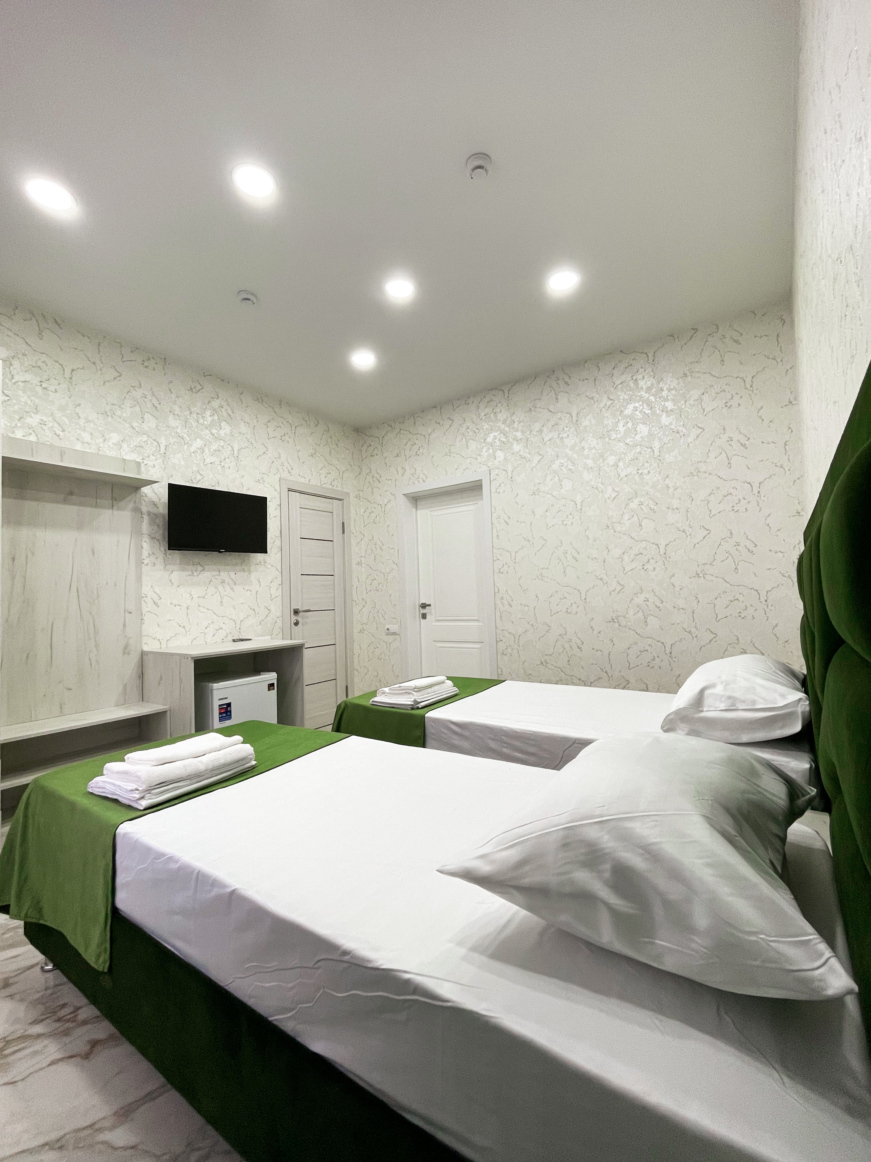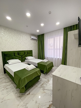 В номере: вешалка, зеркало, кровати односпальные, кровать односпальная, прикроватные тумбочки, шкаф, кондиционер, мини-холодильник, телевизор
