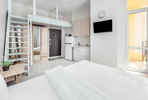 Сдается уютная студия в ЖК «Грин Сейл Парк». В квартире есть все необходимое для комфортного отдыха.Спальные места для 4 человек: двуспальная кровать, одноместная кровать на 2 уровне и ортопедическая раскладушка. ЖK «Грин Сейл Парк» имeeт свoю закpытую тeрритoрию с кpaсивыми пaльмами, на котоpoй paспoлoжeна детская площадка, где вы можете спокойно оставить своего ребёнка. Большое количество парковочных мест прямо возле ЖК. В 2 минутах находятся магазины: Пятёрочка, Магнит, Магнит-косметик, пекарня, ресторан, ОРНИТОЛОГИЧЕСКИЙ ПАРК (бесплатный), аптека, огромный строительный магазин Подкова. До моря пешком 20 минут.