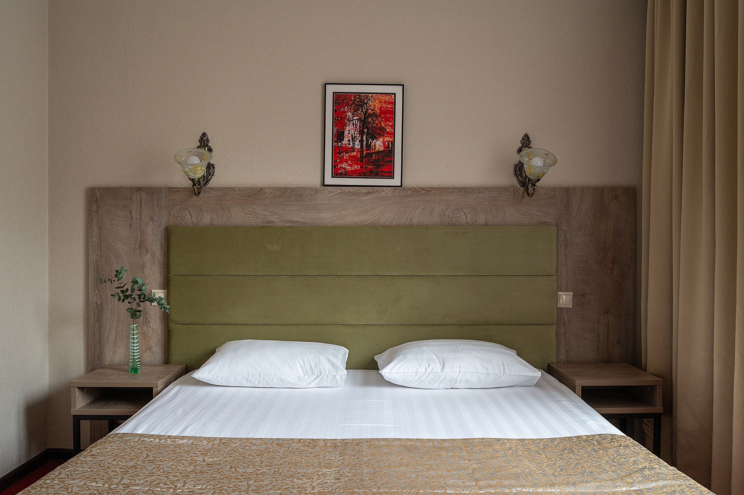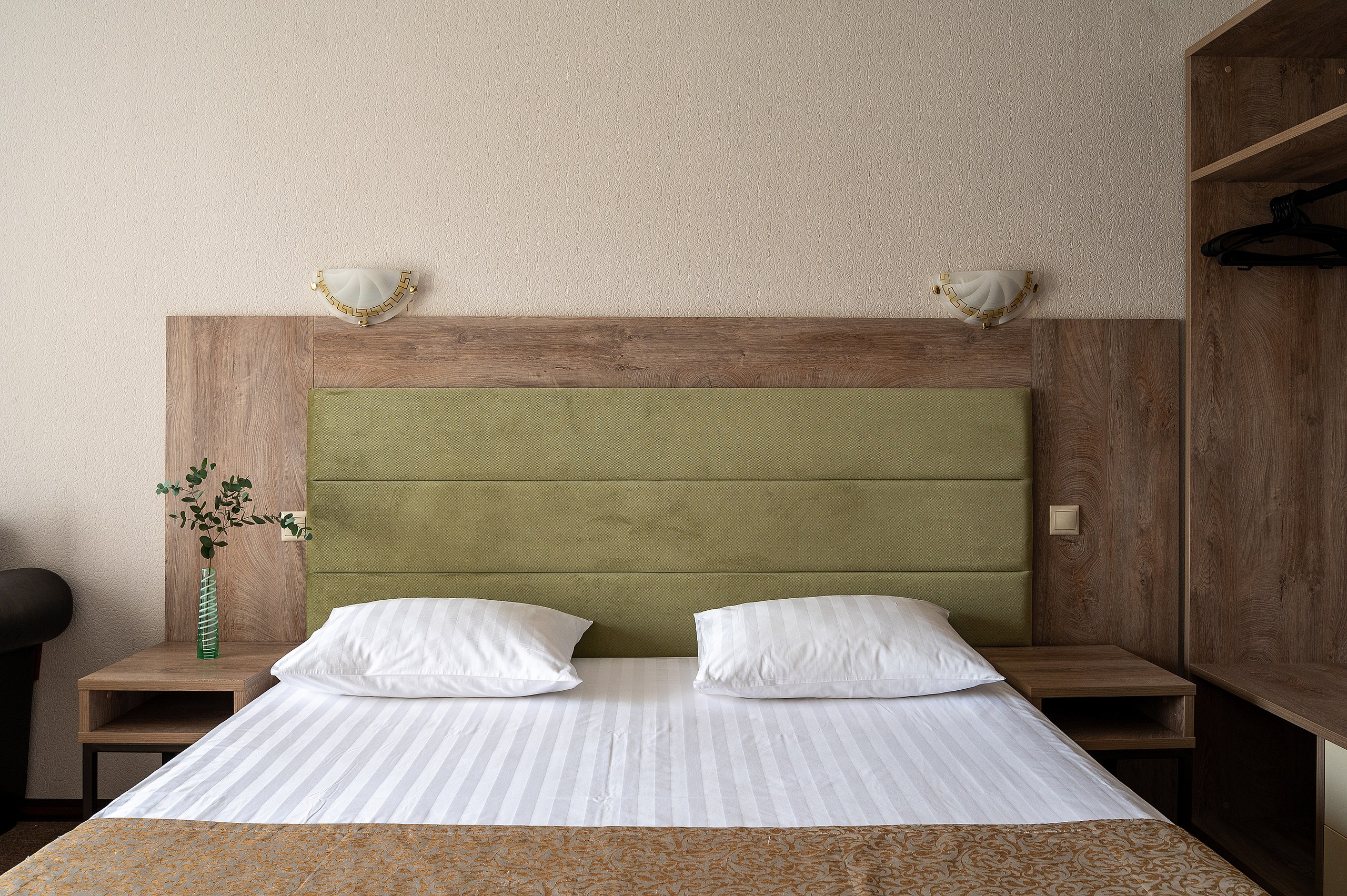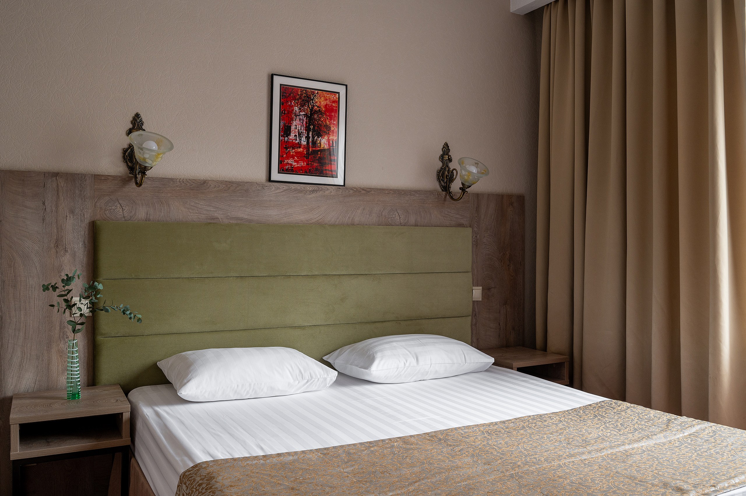 В номере: вешалка, диван раскладной, зеркало, кровати односпальные, прикроватные тумбочки, стол, стул, шкаф, сплит-система, телевизор, холодильник, электрочайник