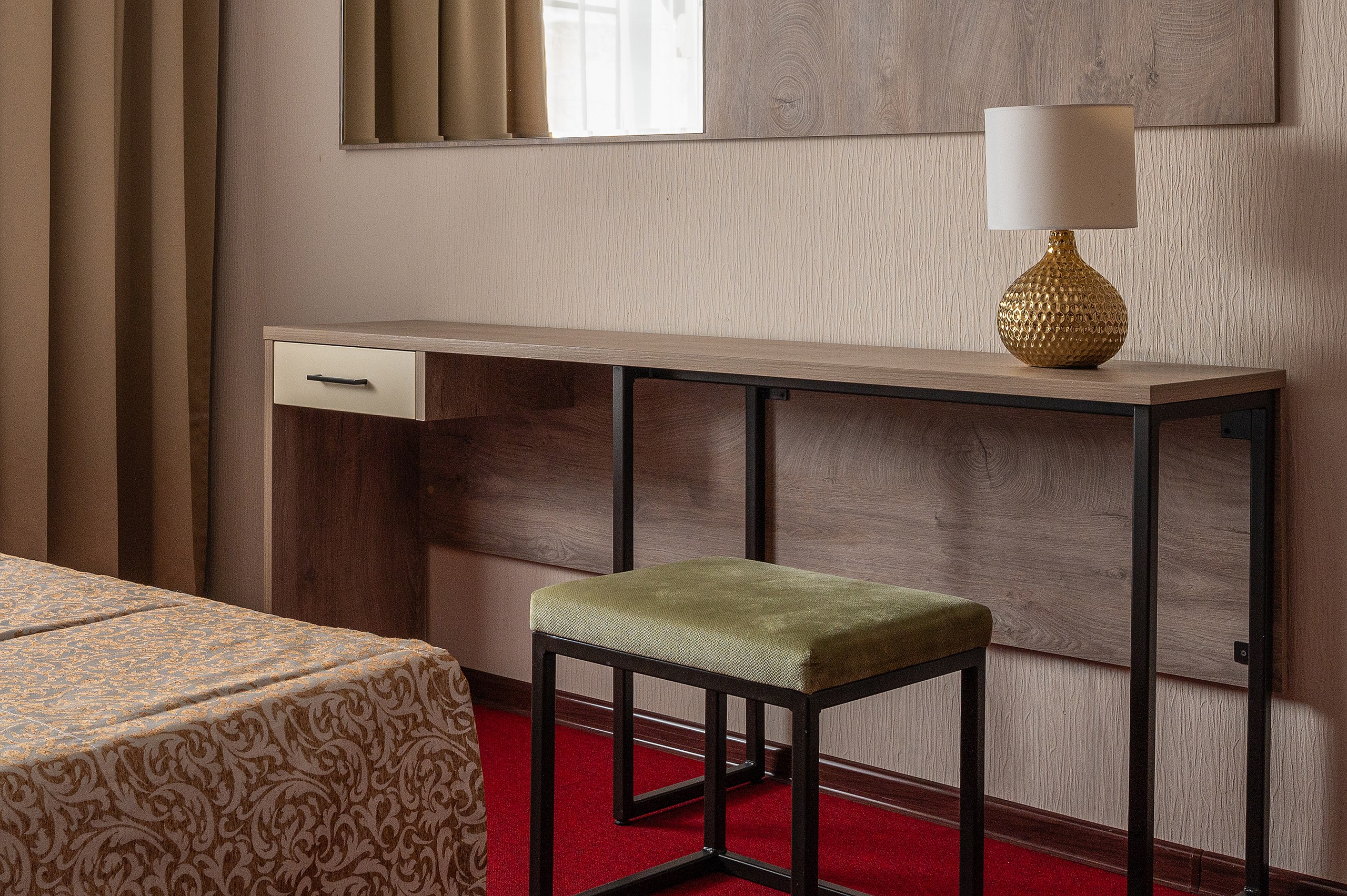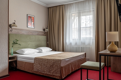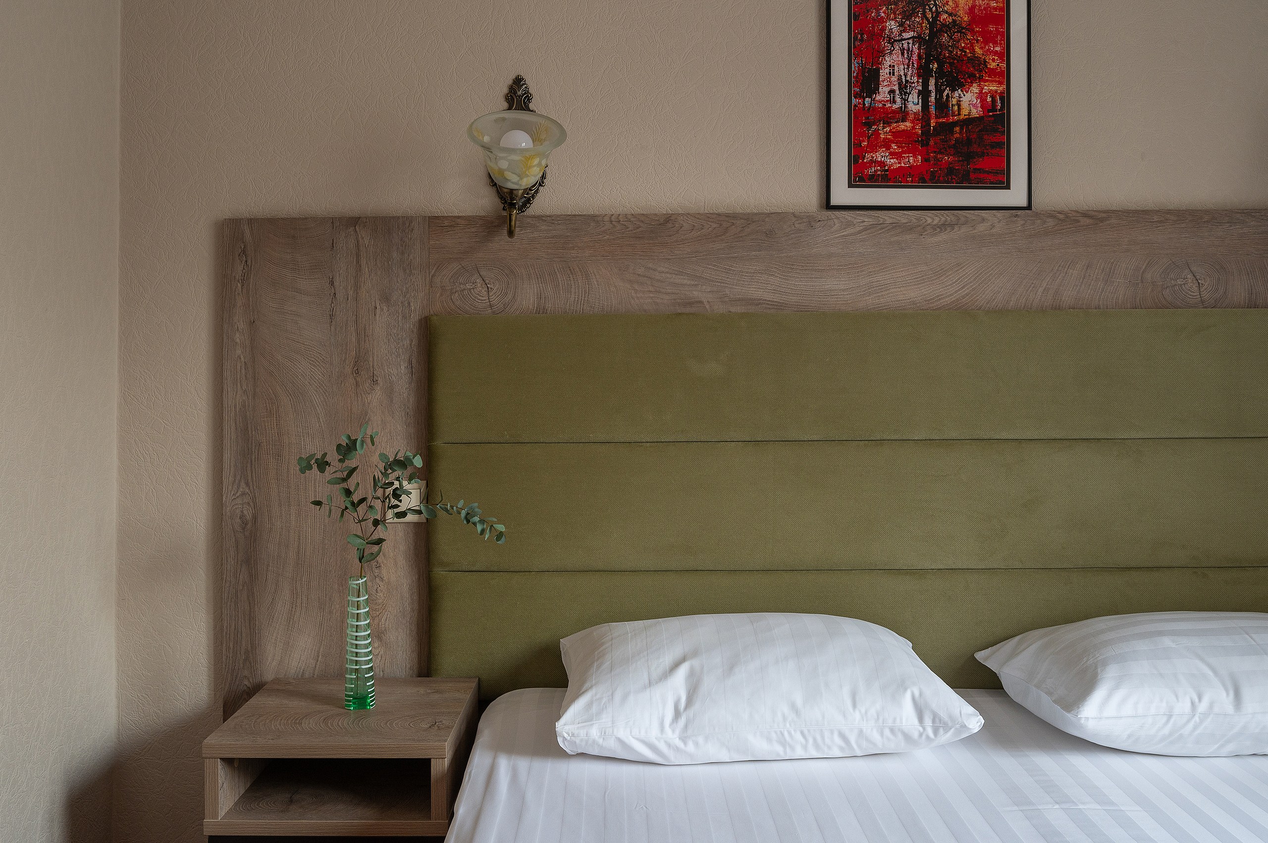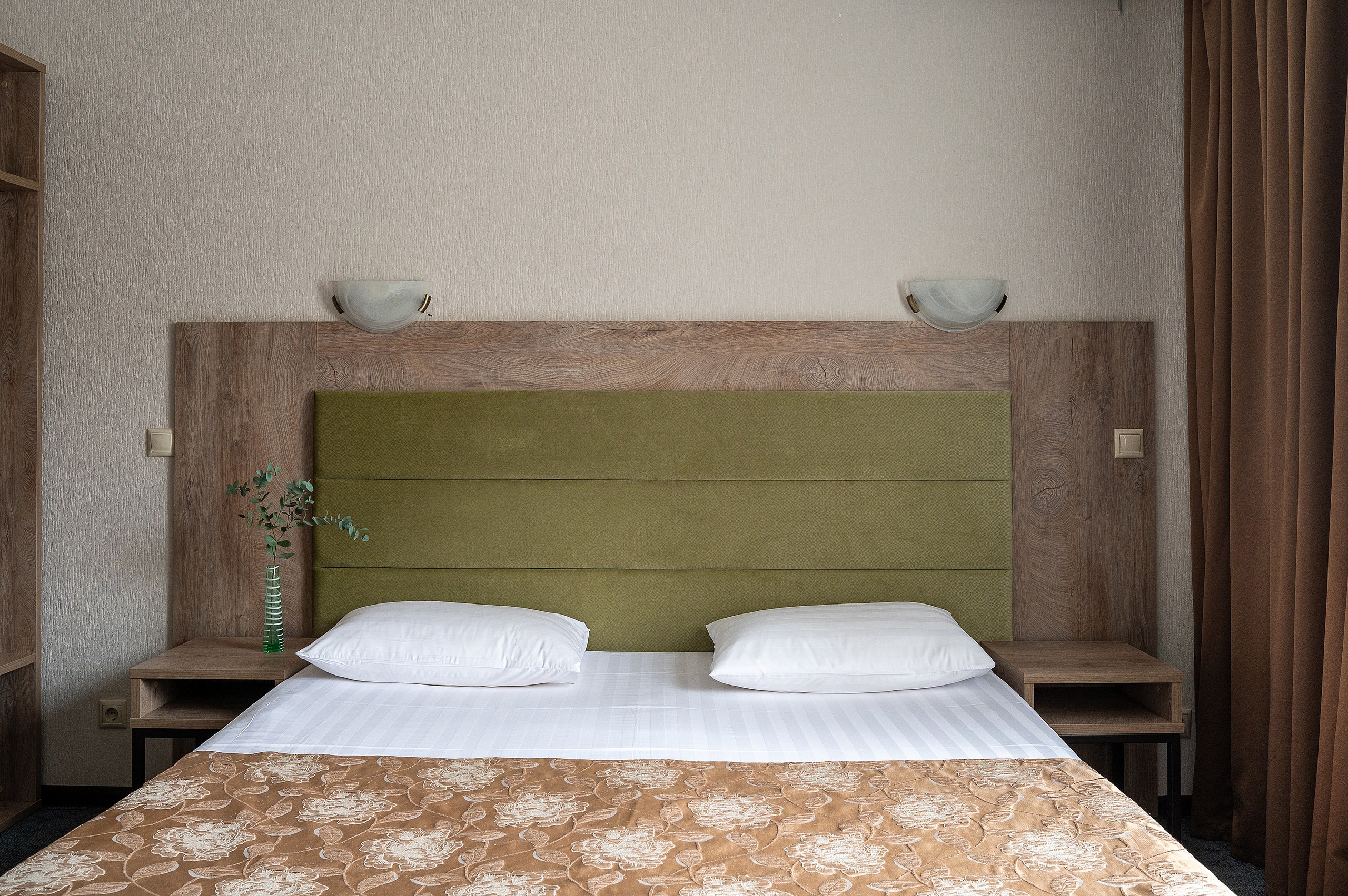 В номере: вешалка, диван раскладной, зеркало, кровати односпальные, прикроватные тумбочки, стол, стул, шкаф, сплит-система, телевизор, холодильник, электрочайник