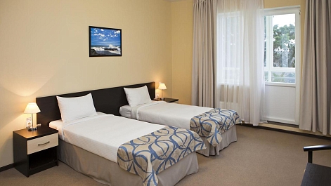 Обширный номерной фонд предоставляет отдыхающим 980 комфортабельных номеров разной степени комфорта. Все номера оснащены ванной комнатой, кондиционером. Из бытовой техники: чайник, мини-холодильник, фен. Из окон открываются живописные виды на море, горы, городскую панораму и Олимпийский парк. На территории работает ресторан «Лира», где отдыхающие могут заказать комплексное питание. Гостям доступны услуги прачечной самообслуживания, беспроводной интернет, охраняемая платная автостоянка возле корпусов. На ресепшене можно арендовать велосипед для прогулок по городу. Малышам предоставляются напрокат кроватки-манежи, для них же организована игровая площадка возле корпуса. В 10 минутах ходьбы находится собственный пляж отеля. Мелко-галечный пляж оснащен всем необходимым — есть навесы, шезлонги, зонтики, кабинки для переодевания, работают кафе, бары, есть водные развлечения.