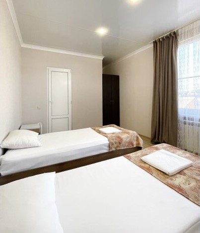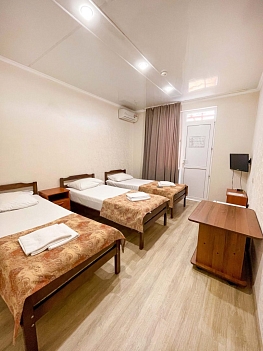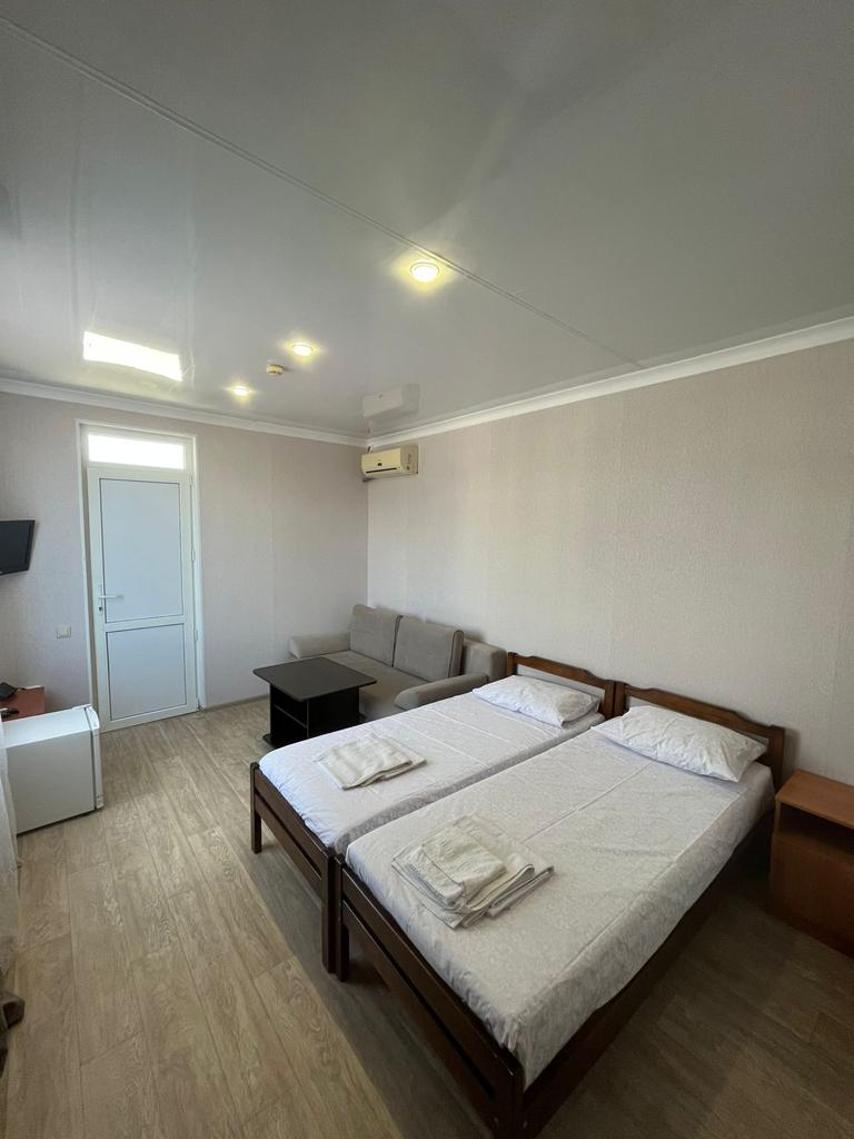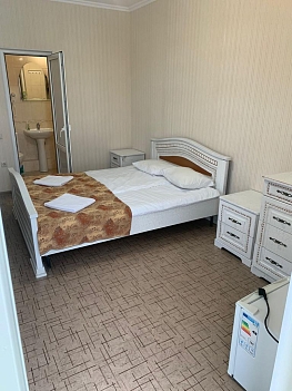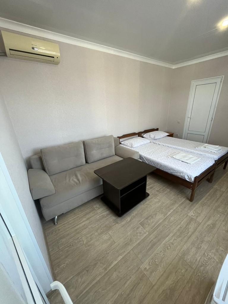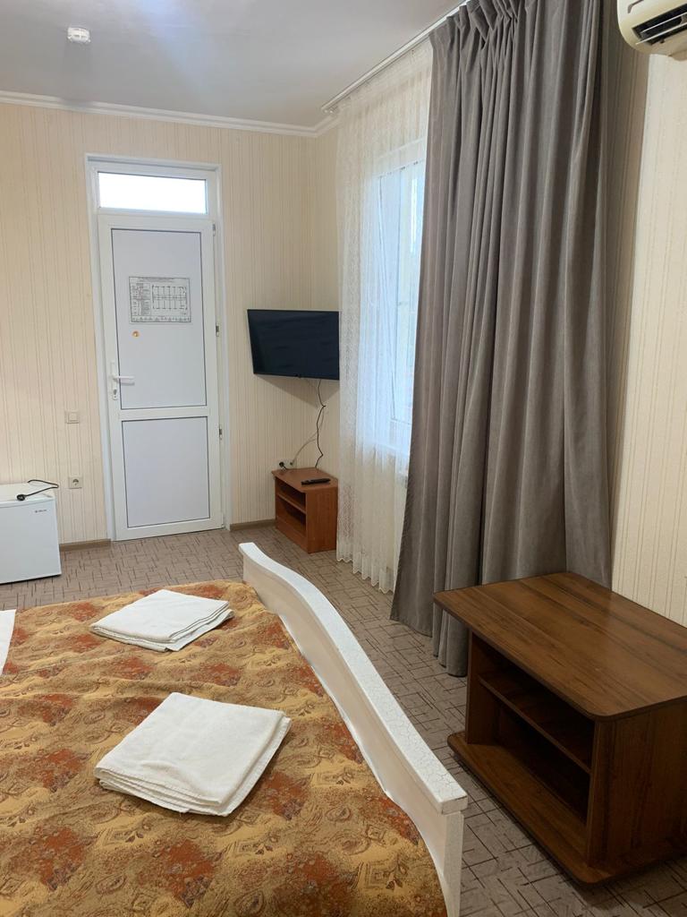 В каждом номере предусмотрена собственная ванная комната, есть кондиционер, телевизор и беспроводной интернет.Для удобства гостей в доме оборудована общая кухня, во дворике есть мангальная зона, при необходимости отдыхающие могут воспользоваться стиральной машиной. Кроме того, родителям с малышами по предварительному запросу предоставляются детские кроватки-манежи.За 15—20 минут можно дойти до одного из городских пляжей. Песчано-галечные пляжи хорошо оборудованы: на побережье установлены теневые навесы, шезлонги, лежаки, кабинки для переодевания, работают душевые, открыты кафе, много пляжных развлечений.