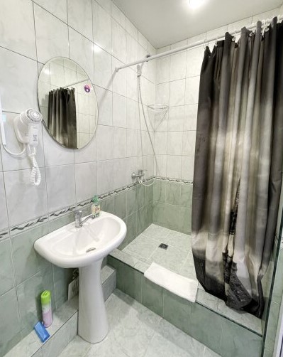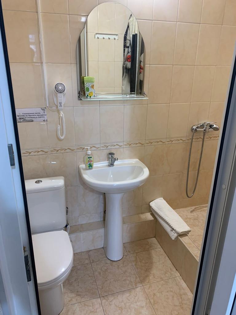 Санузел: с душем (поддон), тапочки, фен