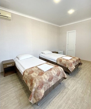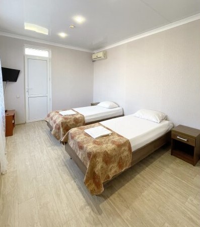В номере: зеркало, кровати односпальные, стол, шкаф, кондиционер, мини-холодильник, телевизор