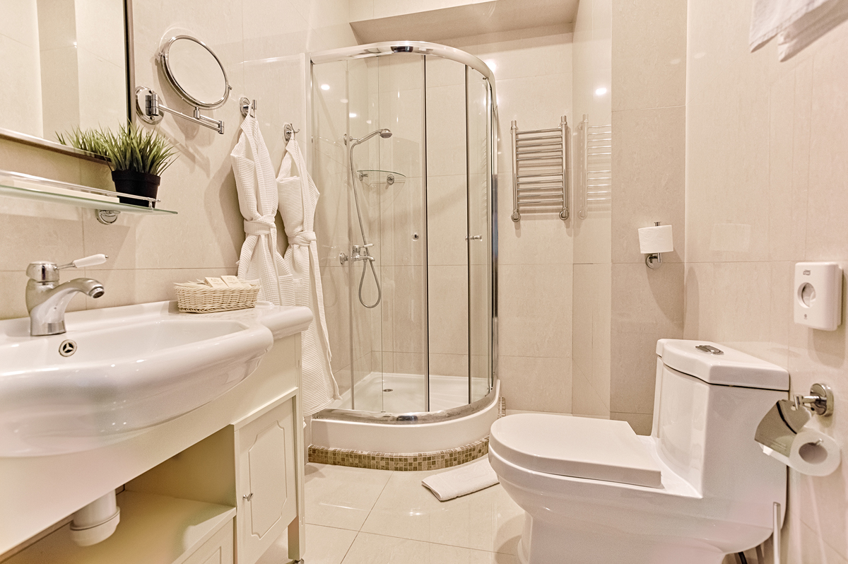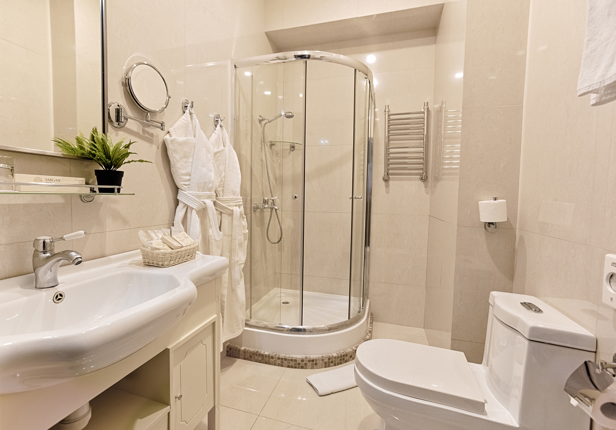 Санузел: с душевой кабиной, туалетные принадлежности, фен