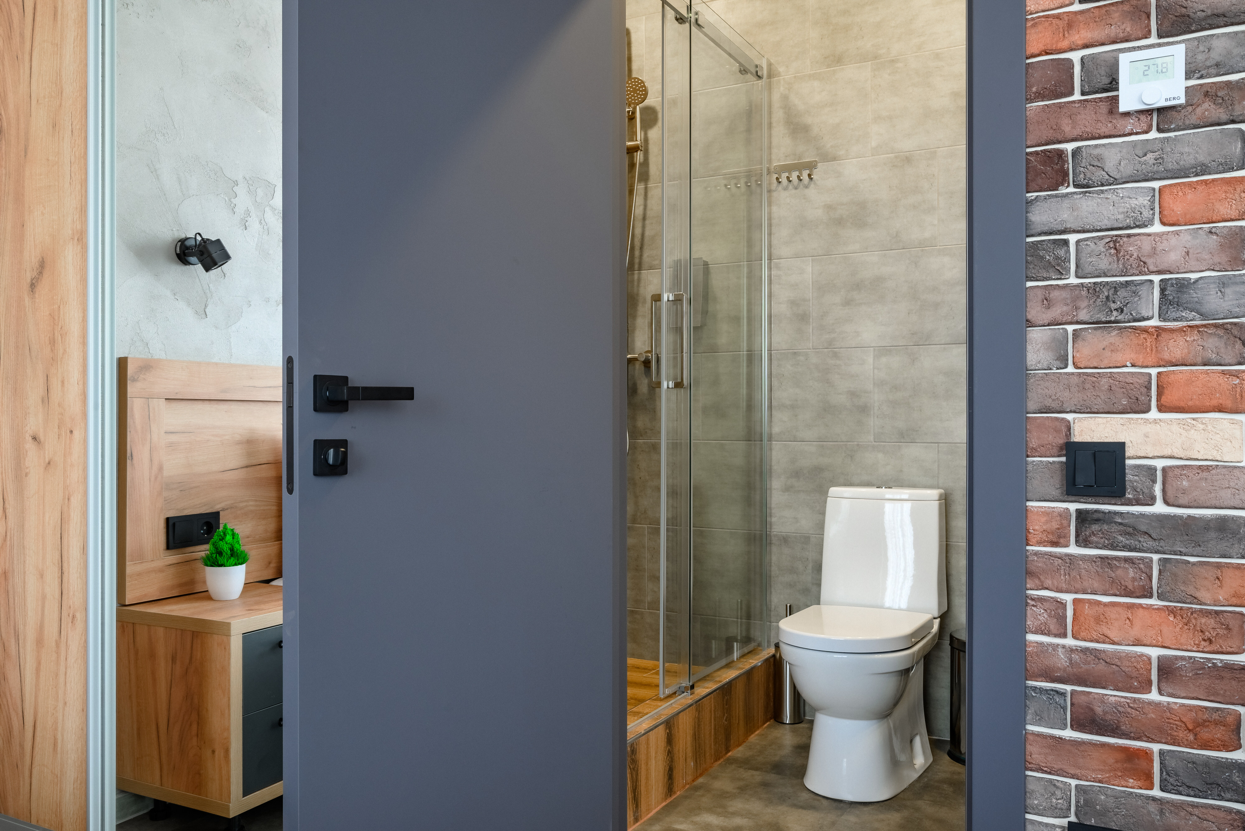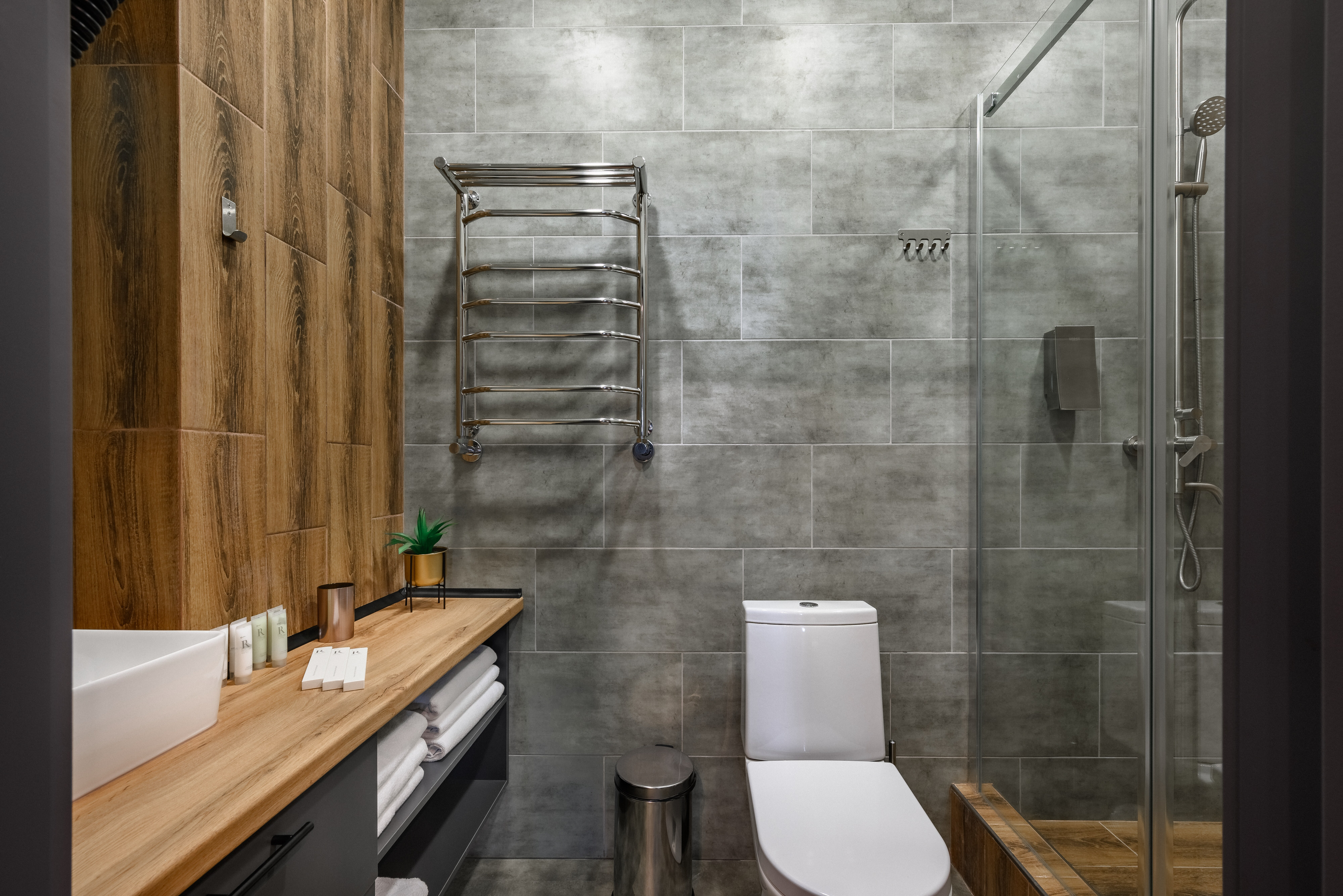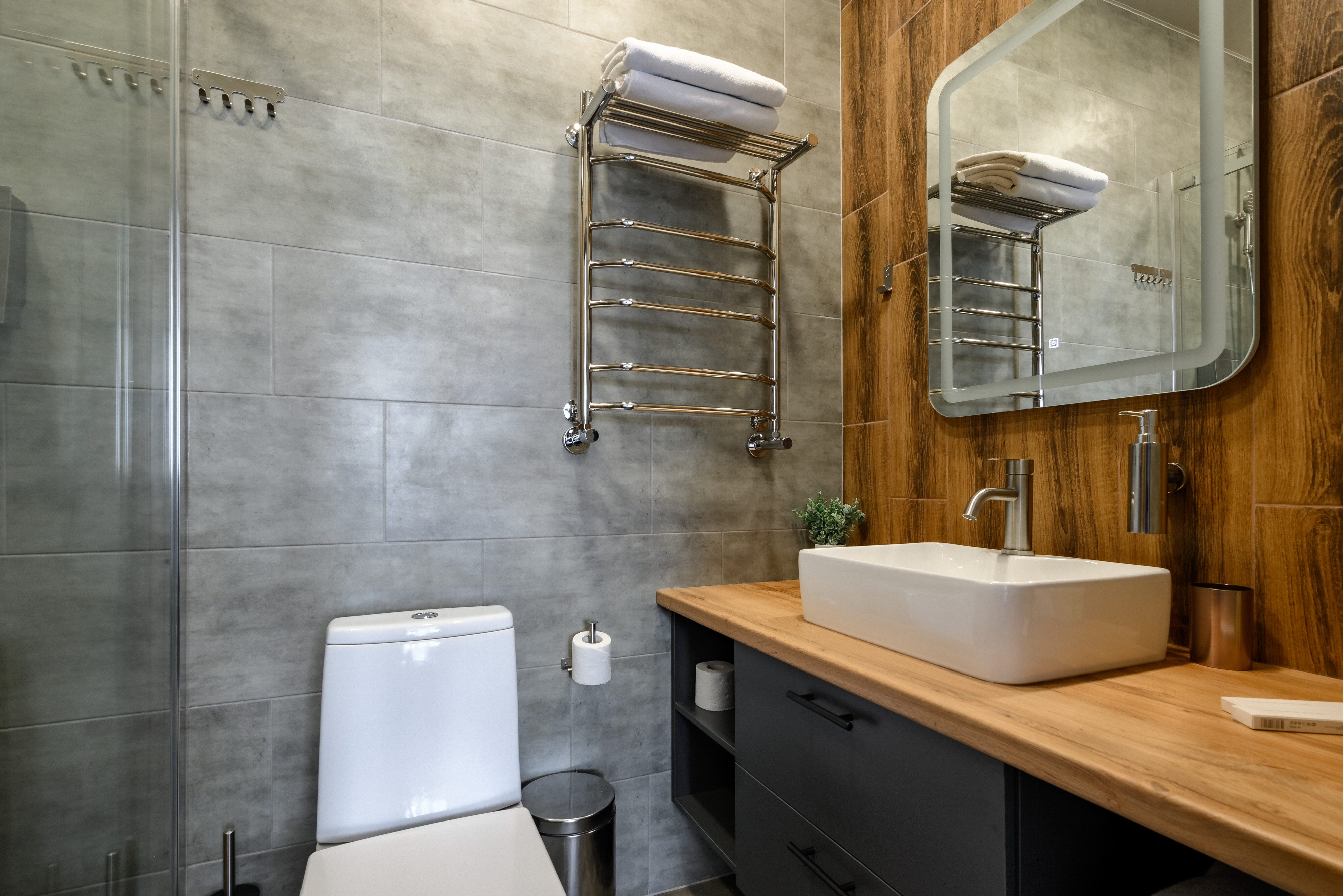 Санузел: с душем, туалетные принадлежности, фен, халат
