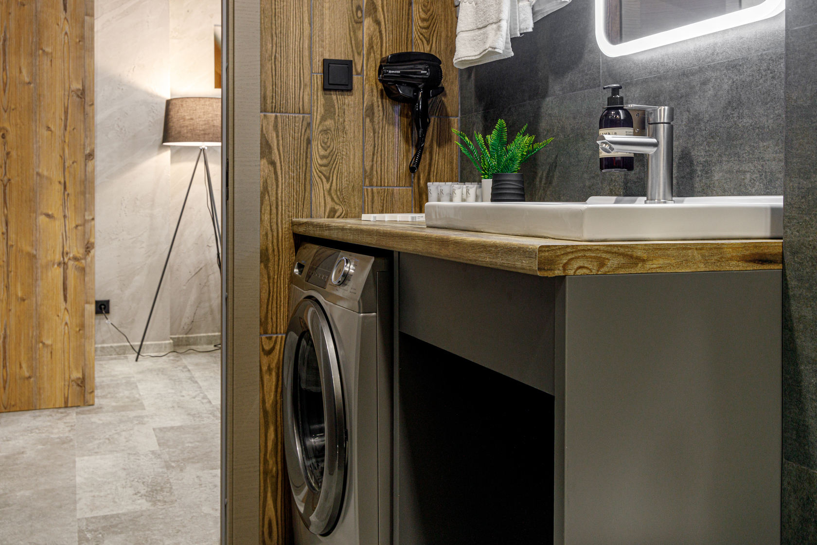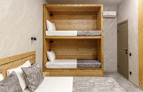 В номере: диван, кровать двуспальная, кровать двухъярусная, прикроватные тумбочки, стол, стулья, шкаф, кондиционер, микроволновая печь, сейф, стиральная машина, телевизор, холодильник